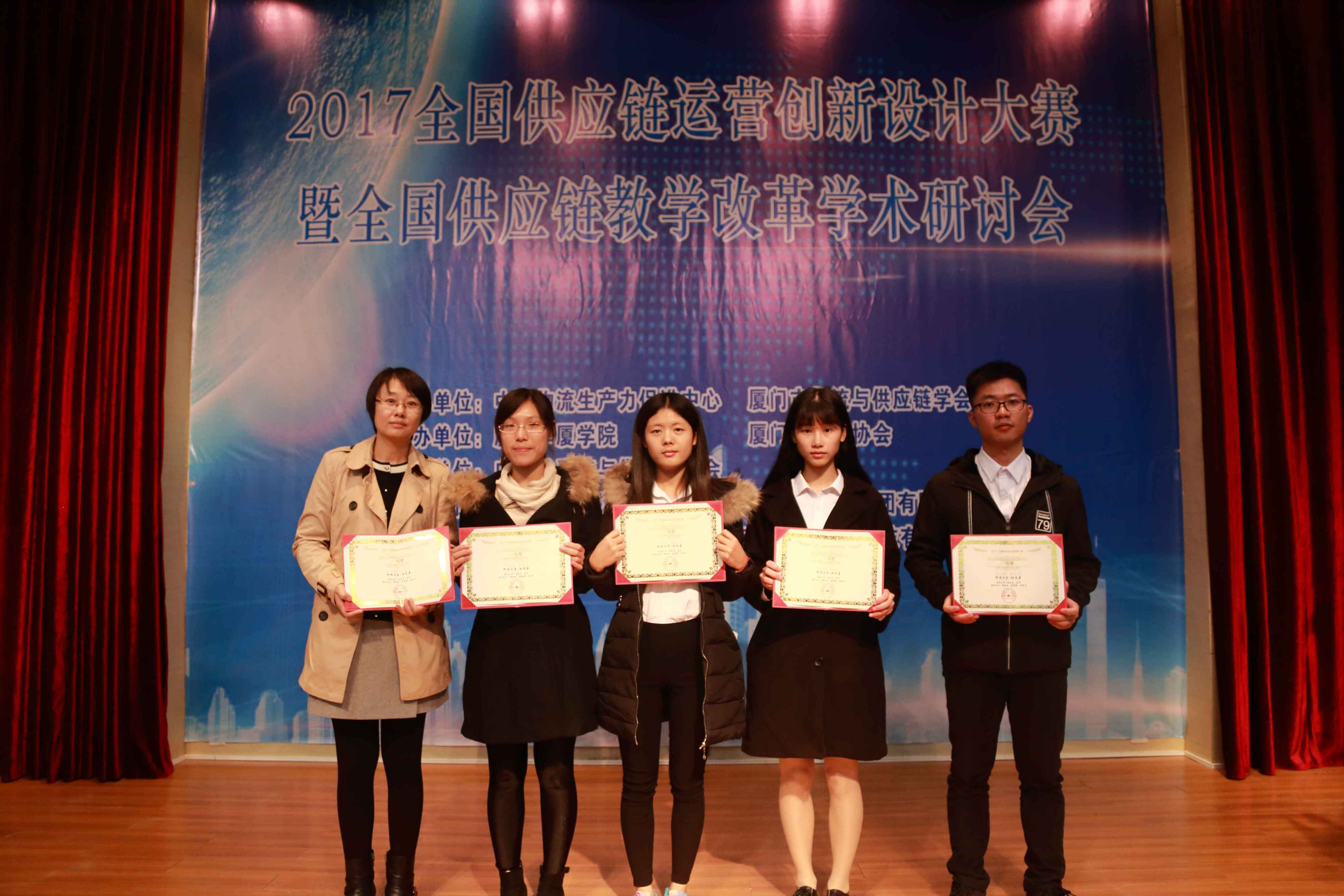 近日,由中国物流生产力促进中心、厦门市物流与供应链学会共同主办的2017全国供应链运营管理大赛在厦门市成功举办,我院由李征、郑雪清老师以及郑幼萍、曾丽娟、梁承洲同学组成的物流管理系独角兽团队从全国215所院校比赛队伍中脱颖而出,获得网赛一等奖。