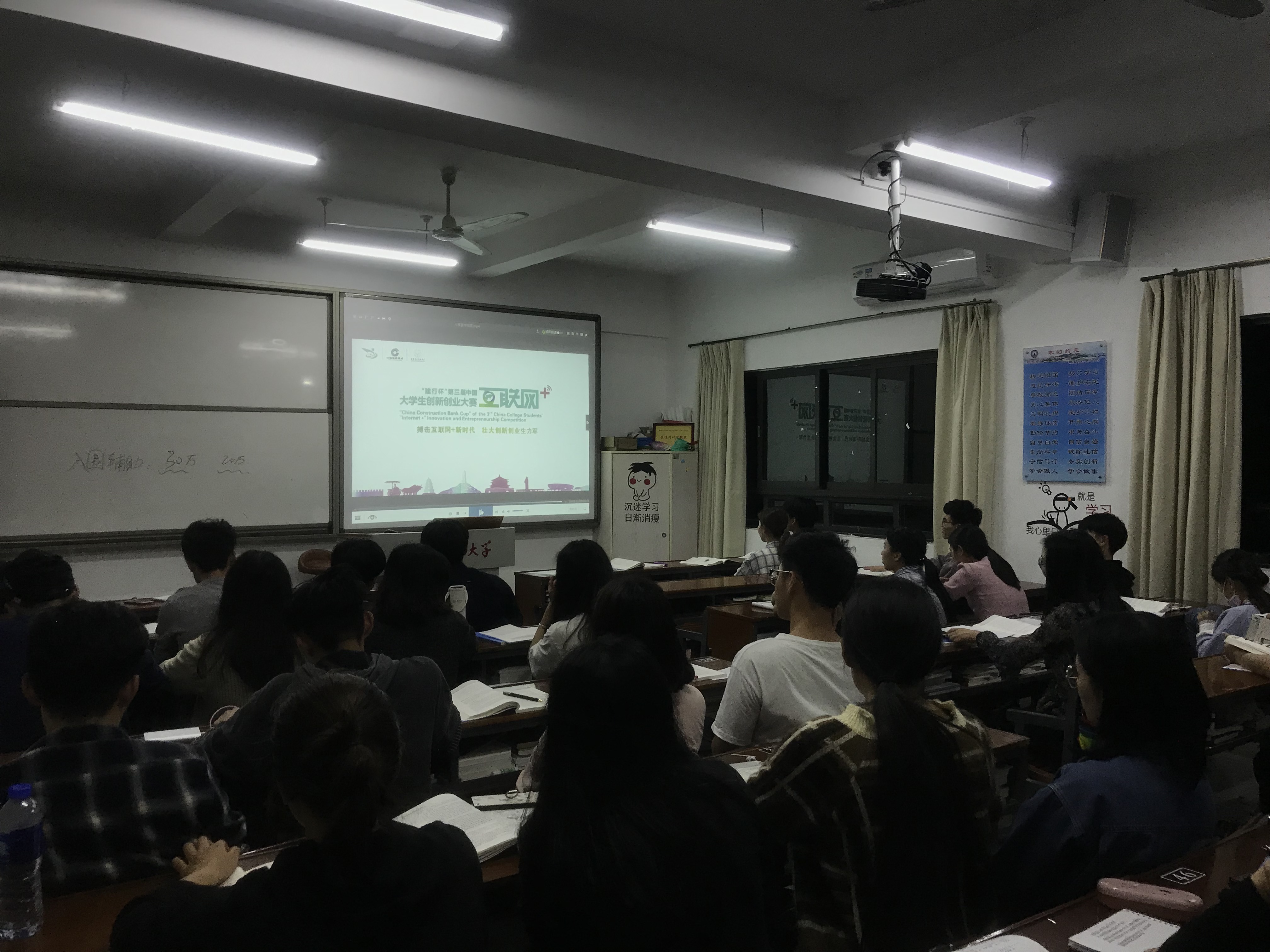 在班会课上,各班主任结合本次“互联网+”大学生创新创业大赛“勇立时代潮头敢闯会创,扎根中国大地书写人生华章”的主题精神以及播放“互联网+”大赛的宣传片,向同学们详细地介绍了大赛目的、任务、规则要求,并通过分享我院在第三届校“互联网+”取得的好成绩,身边同学们善于发现和思考、勇于创新和实践的好案例来鼓励同学们积极投入到本次“互联网+”大学生创新创业大赛中。