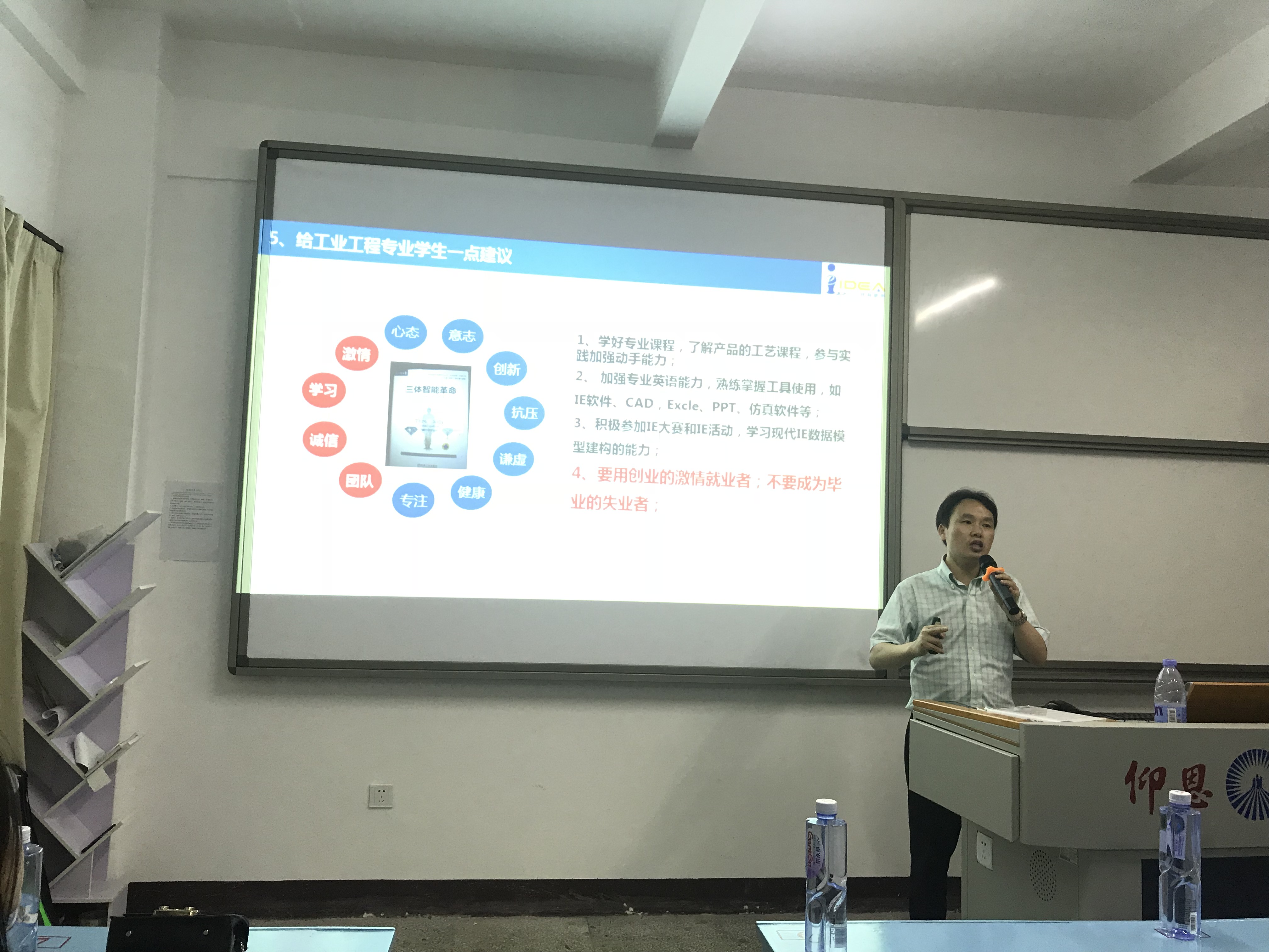 5月17日,中国工业工程与管理研究会理事、上海纤科信息技术有限公司创始人李晚华总裁走进我校,为3044永利集团工业工程专业的学生举办了一场主题为“智慧时代,IE未来”的专业讲座。校长助理石羊、3044永利集团院长翁景德、工业工程与管理研究院副院长杨敏以及2017级工业工程专业全体师生出席并聆听了本次讲座。