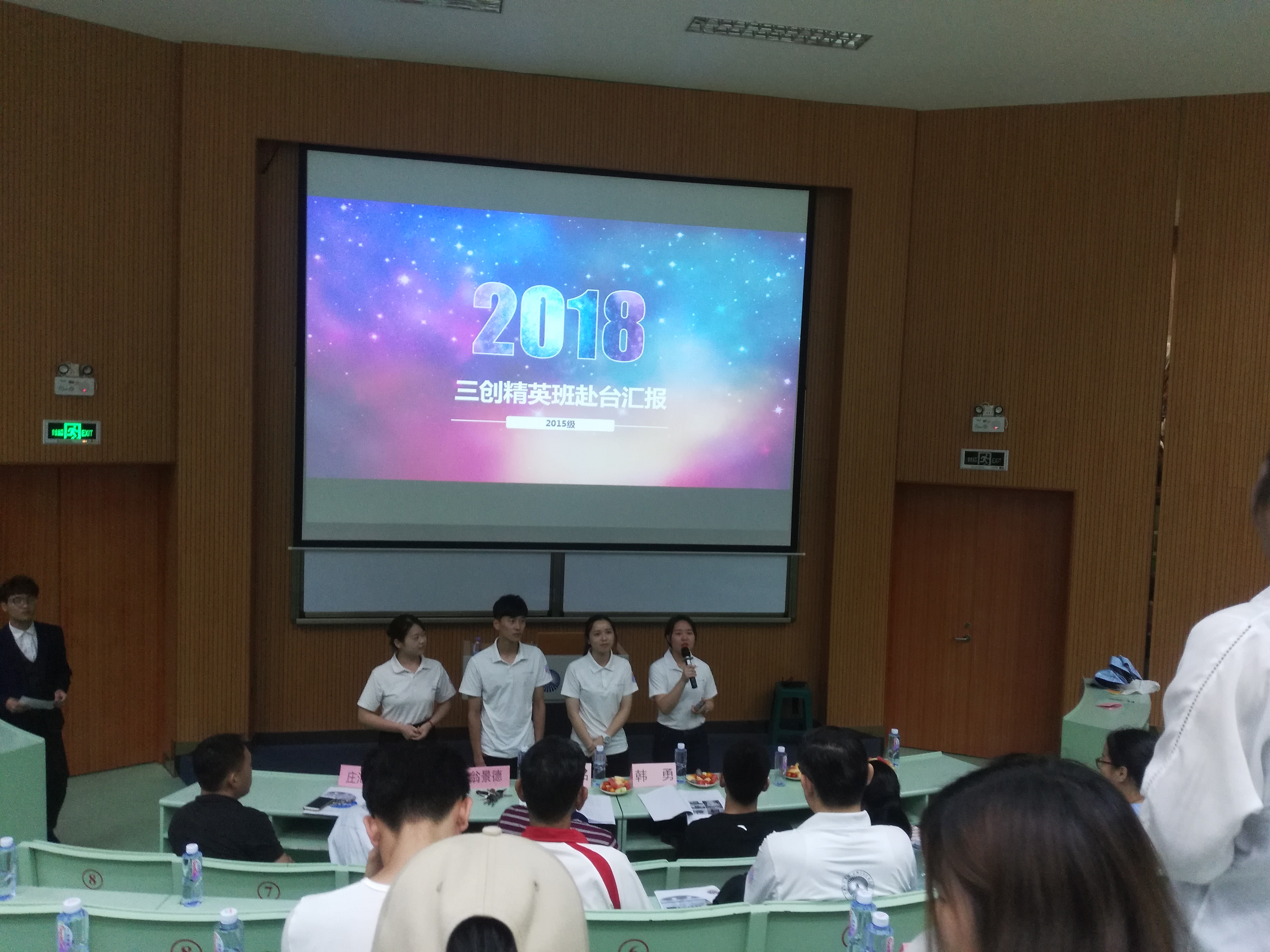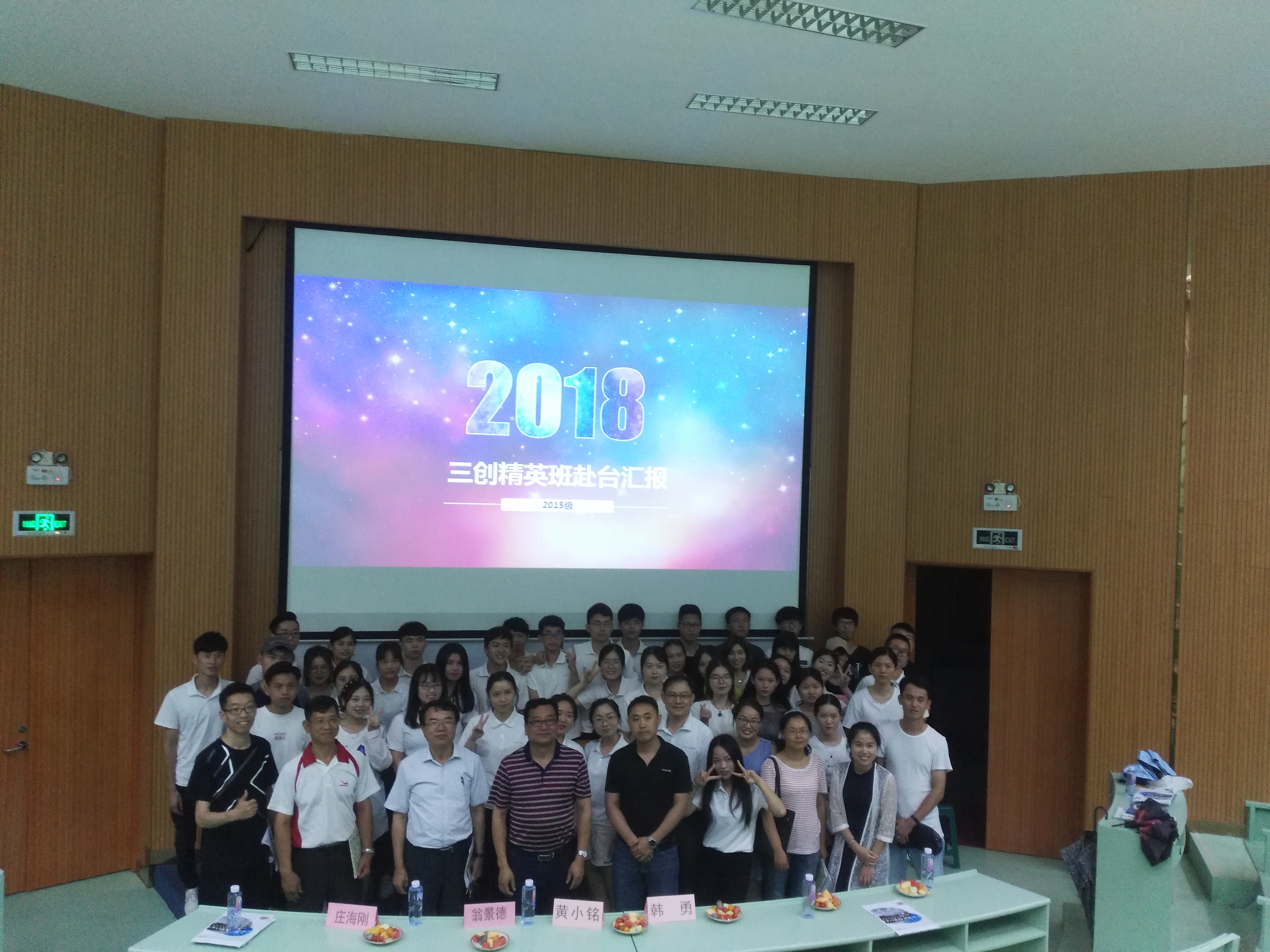 汇报会上,在翁院长的精彩发言下拉开了序幕。2015级三创精英班同学以小组的形式进行赴台汇报,分别从台湾的旅行、竞赛与专利、学习、志工参访活动以及生活五个方面详述了台湾之行的所见所闻所感;以及在半学年的学习交流过程中,学习生活存在的问题,适应文化差异,从陌生到熟悉,这个过程的适应与转变给“三创”的同学们留下深刻的印象。2015级三创精英班的汇报精彩纷呈,整场报告会在与会人员踊跃的提问和活跃的氛围中临近尾声。