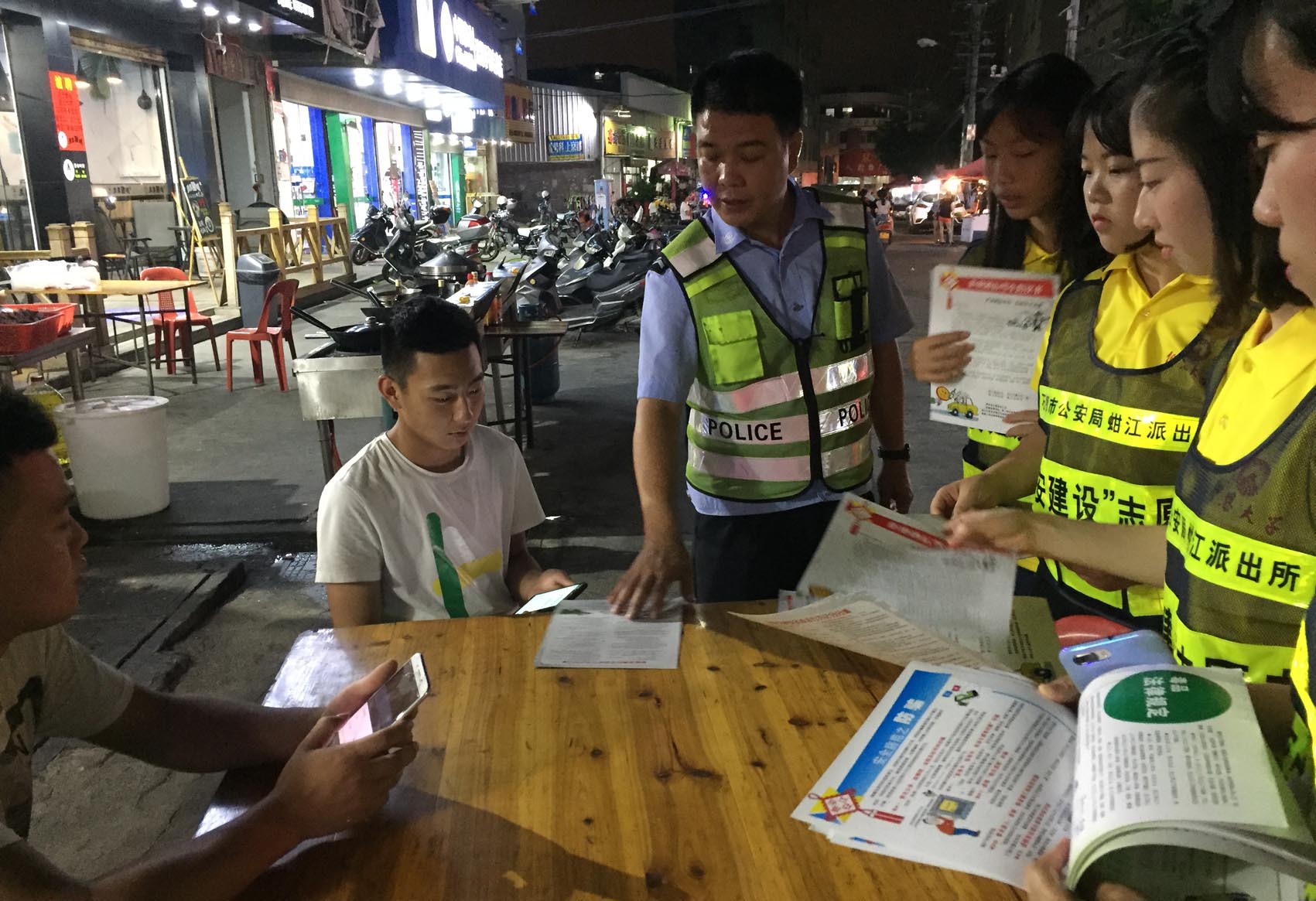 日前,在蚶江派出所民警、协警人员的带领下,3044永利集团赴石狮蚶江派出所警营实践队到洪窟社区讲解、宣传各类安全知识,发放《平安蚶江倡议书》《崇尚科学 反对邪教》《珍爱生命 拒绝毒品》《拒绝酒后驾车倡议书》《安全防范之防骗》等宣传材料,走访各大中型企业与重点单位,检查消防安全,检查物流快递包裹三个100%,开箱检查是否存在易燃易爆物品以及加油站消防安全及散装汽油登记检查。