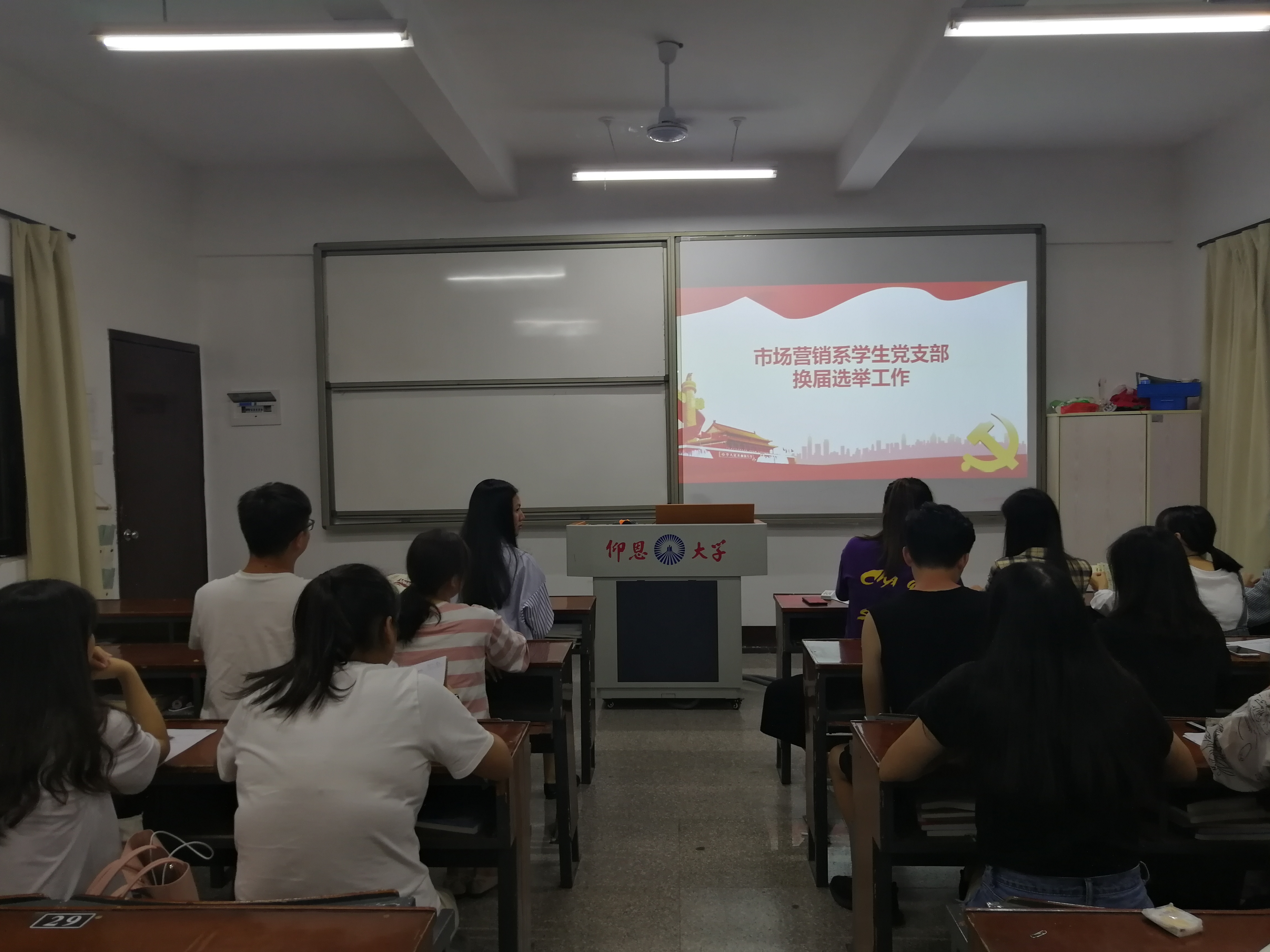 9月27日晚上7点,市场营销系学生党支部在共和楼411教室召开党支部换届大会,参加本次换届大会的有市场营销系学生党支部书记连景霞老师、市场营销系学生党支部全体党员以及17级积极分子,本次大会由李陈蕊同志主持。