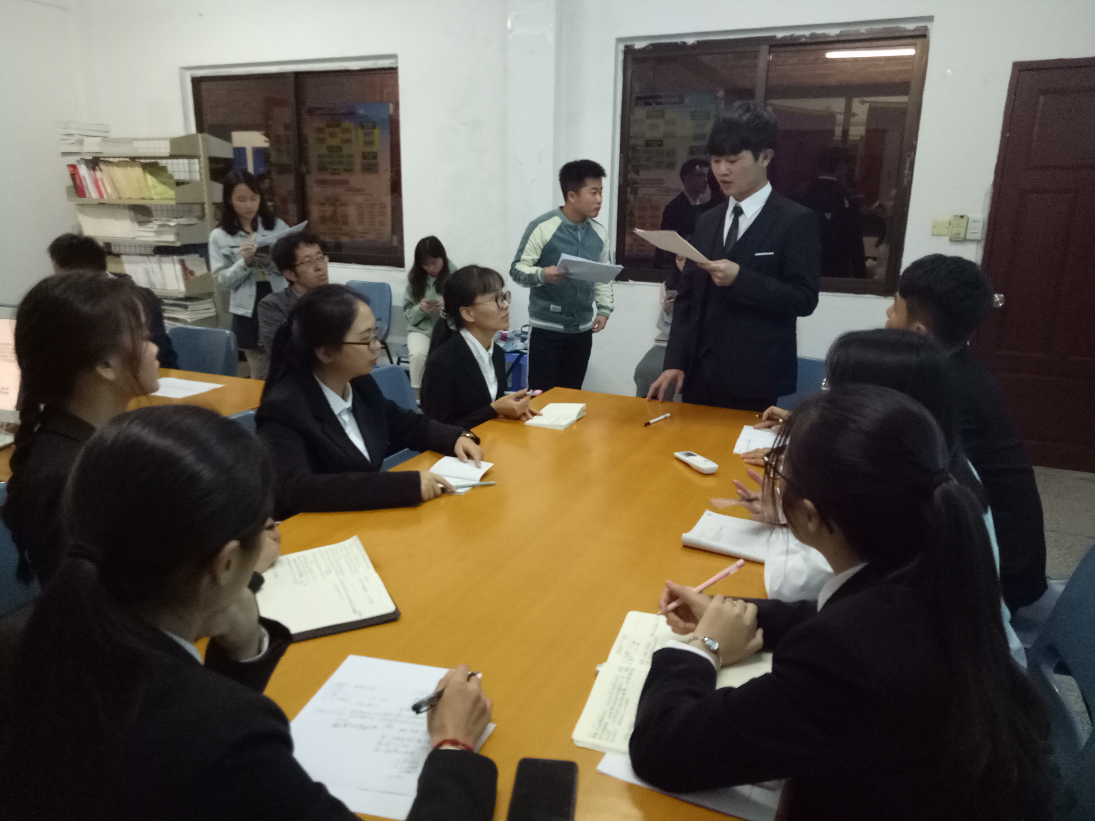 面试正式开始前,参与竞选的学生首先进行一分钟简短的自我介绍,让面试官简单了解其想要竞选的具体职位以及自身优缺点。为了提高效率,紧接着采用LGD无领导小组讨论的方式进行,考题由每组参与竞选的学生随机抽取,小组成员依次陈述基本观点,展开自由讨论,最后由专人进行总结陈词。面试官则根据小组成员的表现打分,取平均分作为面试环节的成绩。