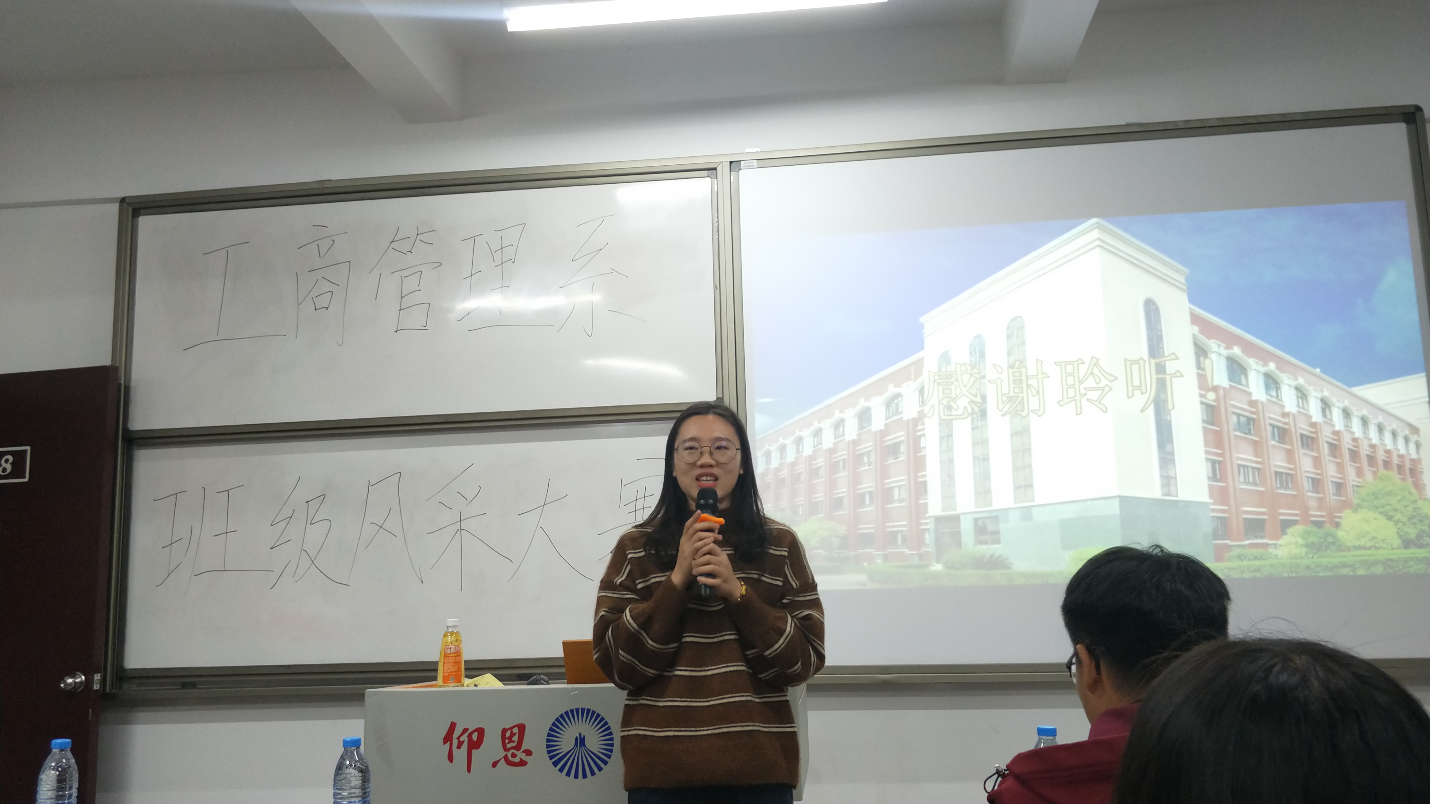为加强工商管理系各班级建设,增强班级凝聚力,营造优良班风学风,工商管理系于12月5日晚上在共和楼408举行班级风采大赛初赛。李育瑜辅导员、陈玉珠老师及工商管理系主席团作为评委应邀出席。