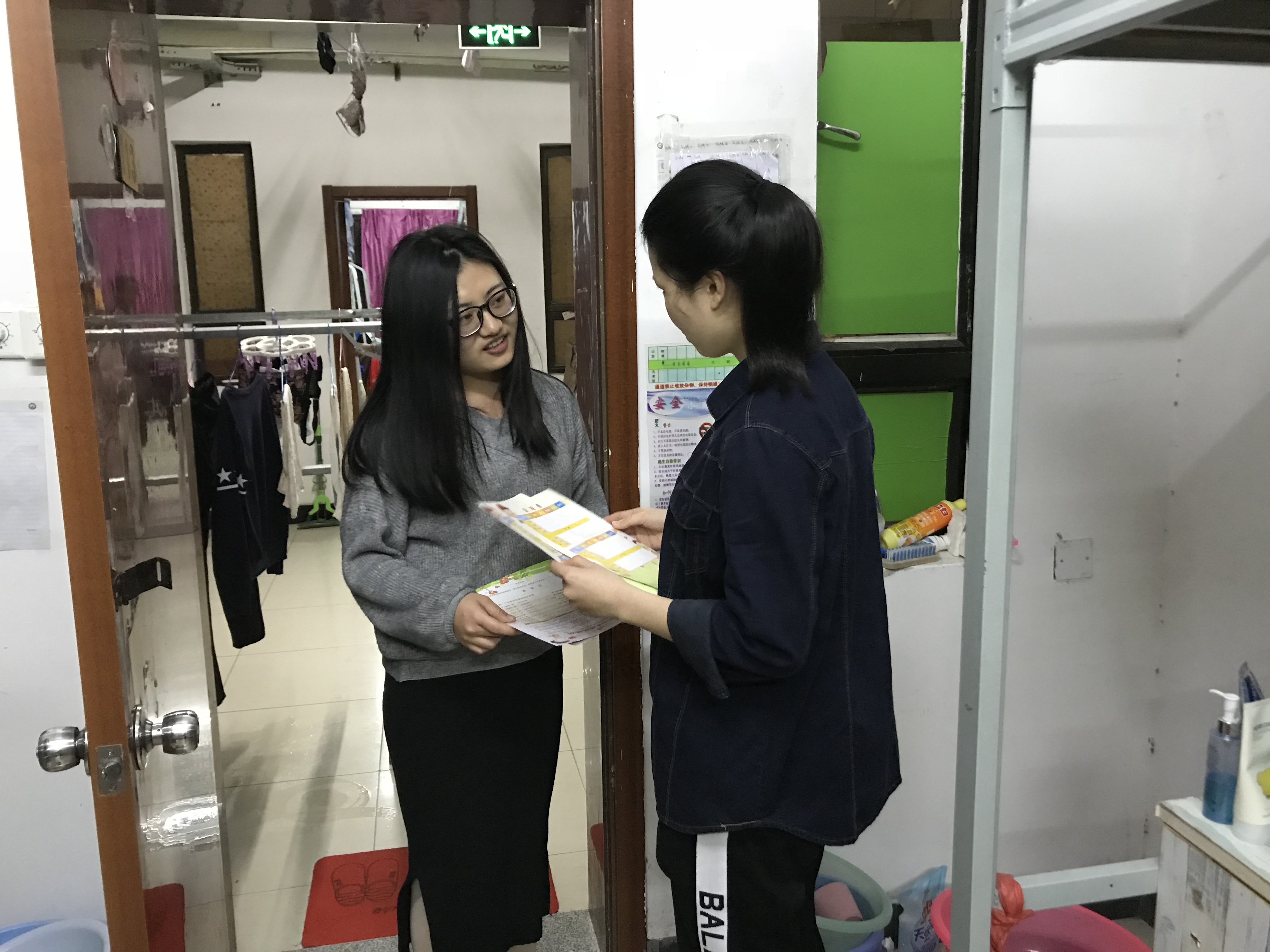 为同学们普及疾病防范知识 支部学生党员、积极分子们分别在天山楼、东海楼发放泉州洛江疾病防控中心分发的预防肺结核病宣传单,并向同学们宣传结核病的传播途径、防治办法。