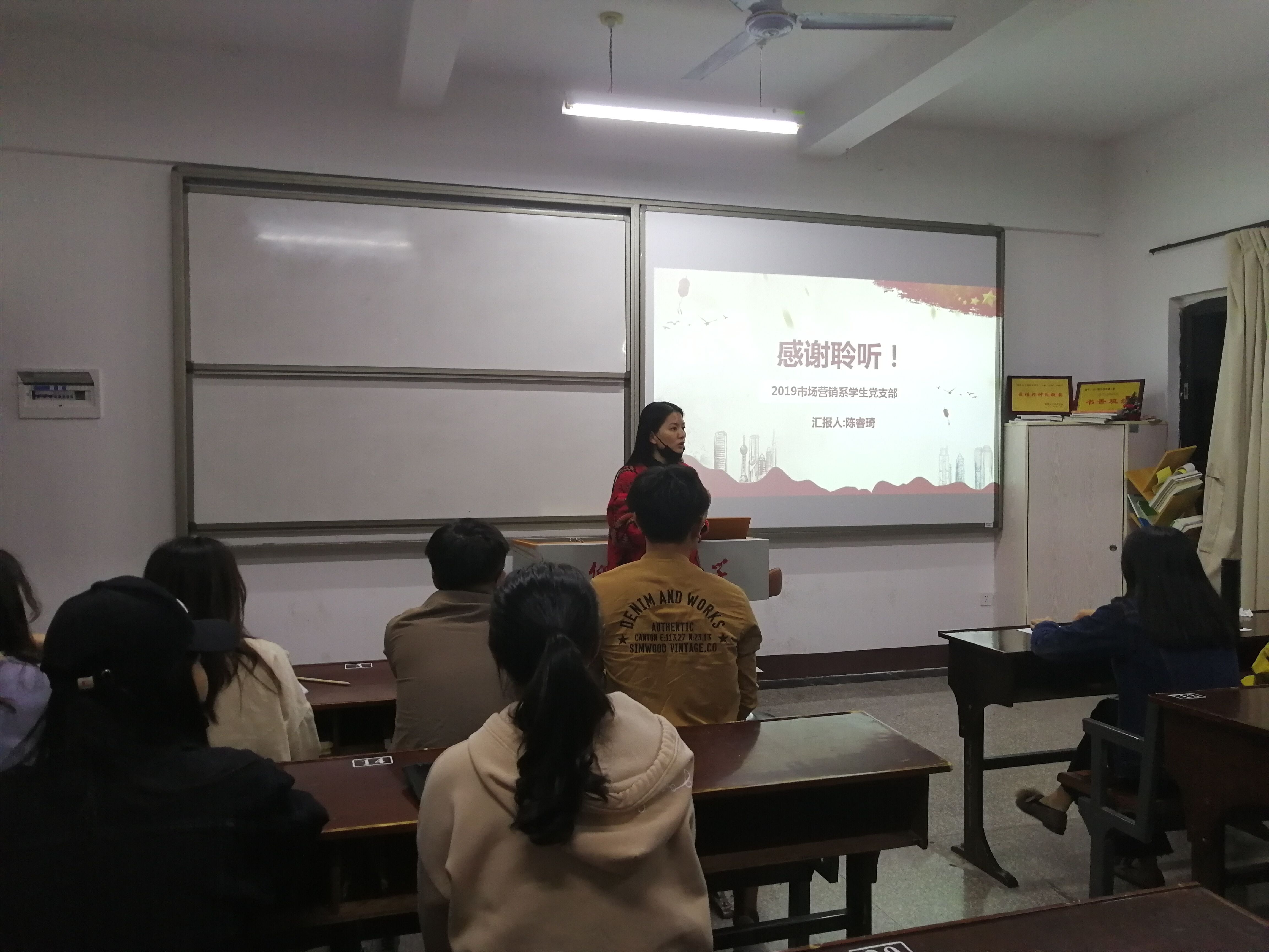 3月26日晚上,市场营销系学生党支部在共和楼322开展关于《坚持党对一切工作的领导》专题党课学习活动。参加本次活动的有市场营销系学生党支部书记连景霞以及支部全体学生党员。