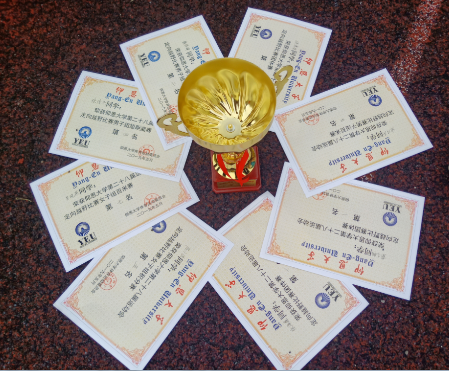 奖状与荣誉 比赛分为个人赛事与团体赛事,在比赛中,工商学子们如离弦之箭冲出起点,在整场比赛中,不时能见到参赛选手们忙碌寻找打卡处的身影,时刻充满着紧张的气氛。运动员们争分夺秒、寻丝逐迹,奋力奔跑在拼搏的路上。经过数轮精彩的比拼,工商系荣获定向越野赛总分第一的好成绩!其中短距离赛中赖祥峰获第二名、张传杰获第四名;积分赛中陈小佳获女子组第五名;百米竞赛中张传杰获男子组第四名、吴晓燕获女子组第七名。