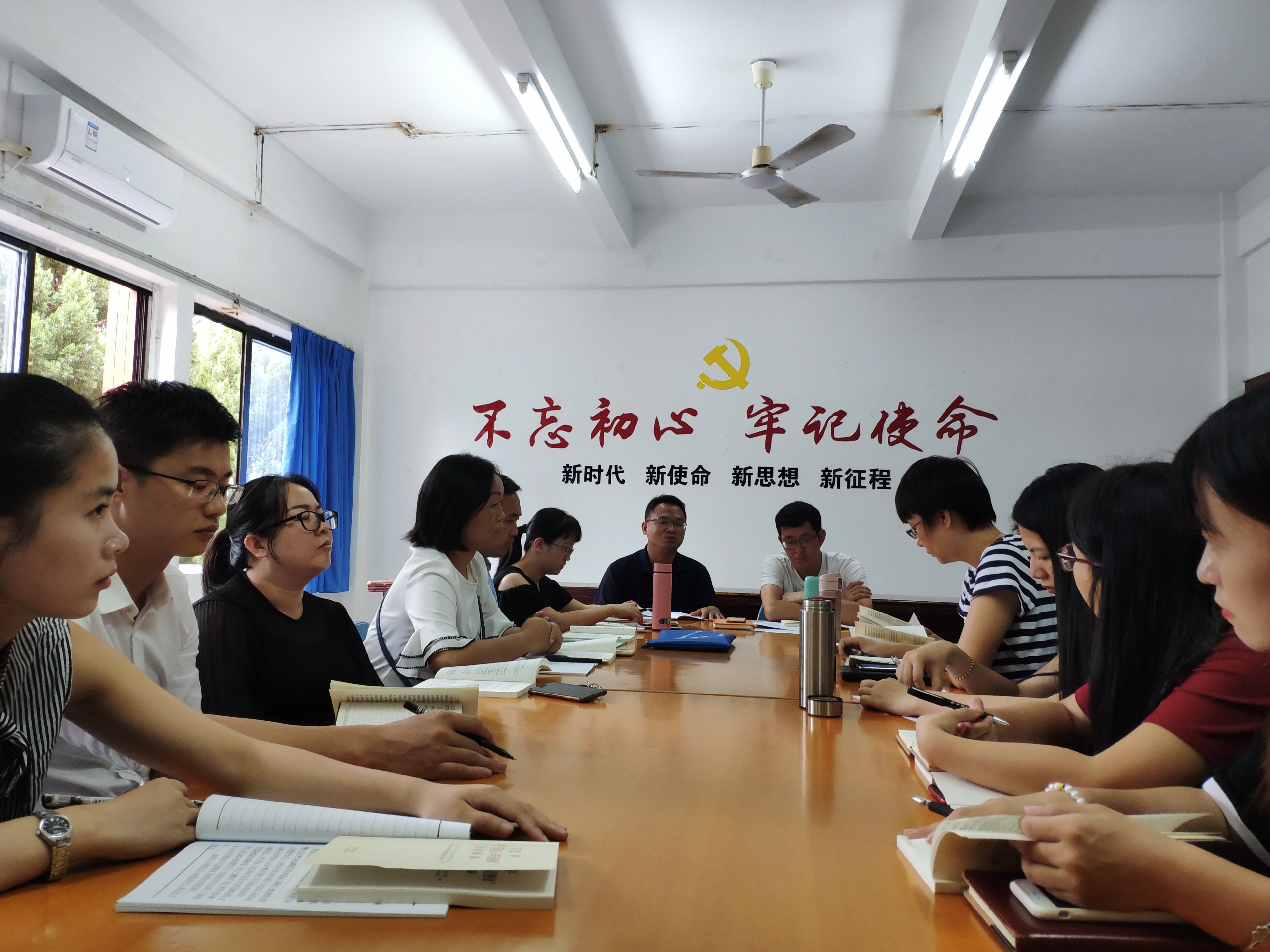 与会教师党员在前期自学《习近平关于“不忘初心、牢记使命”论述摘编》的基础上,紧扣“不忘初心,用实际行动践行入党誓言”这一主题,聚焦学习贯彻习近平总书记关于“不忘初心、牢记使命”的重要论述进行研讨。
