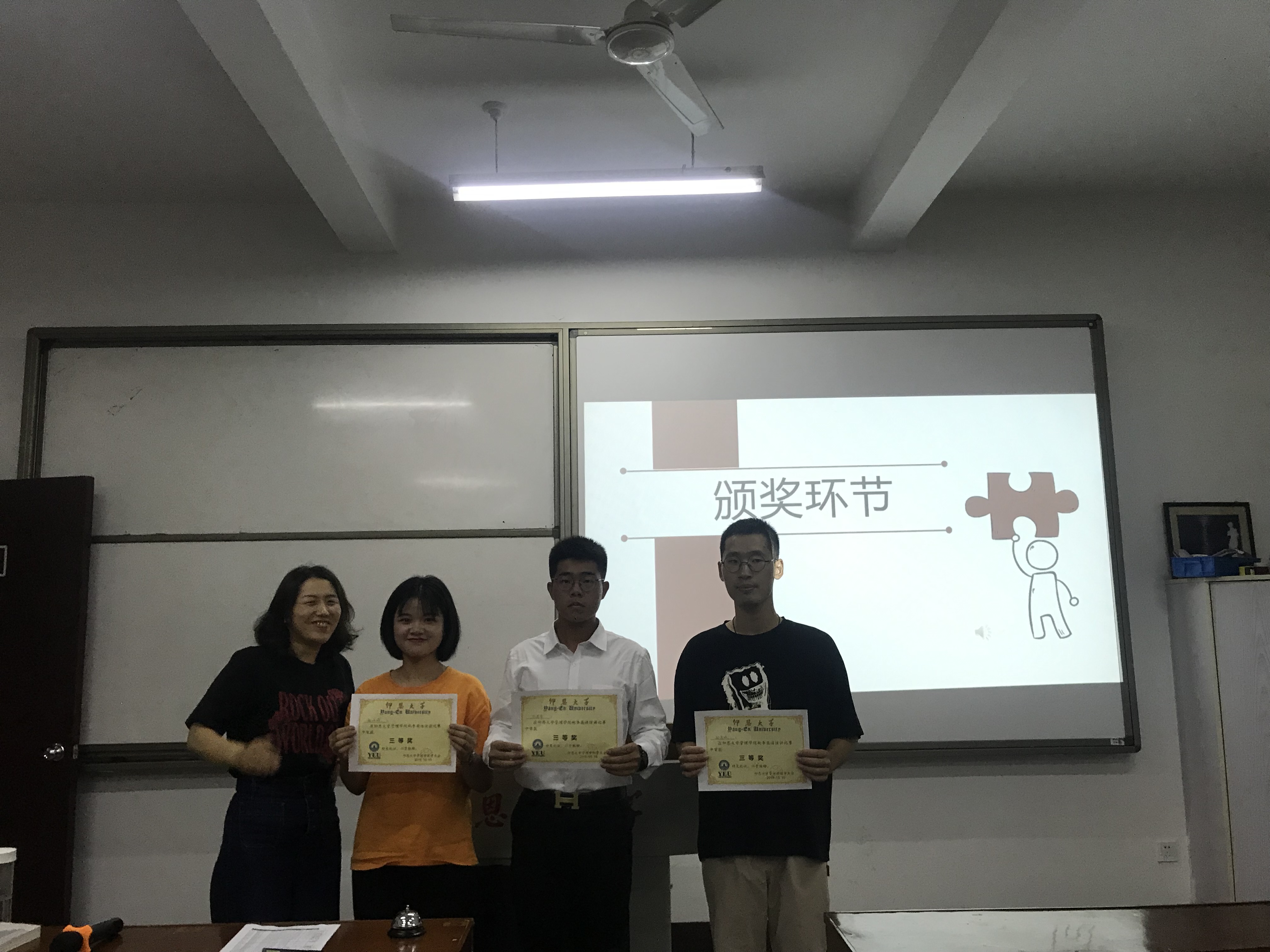颁奖 此次比赛汇聚了我院各系的参赛选手,选手们发音清晰、语言流畅、演讲技巧娴熟赢得了观众的热烈鼓掌以及评委老师的肯定。评委老师也对选手们的演讲进行了点评。