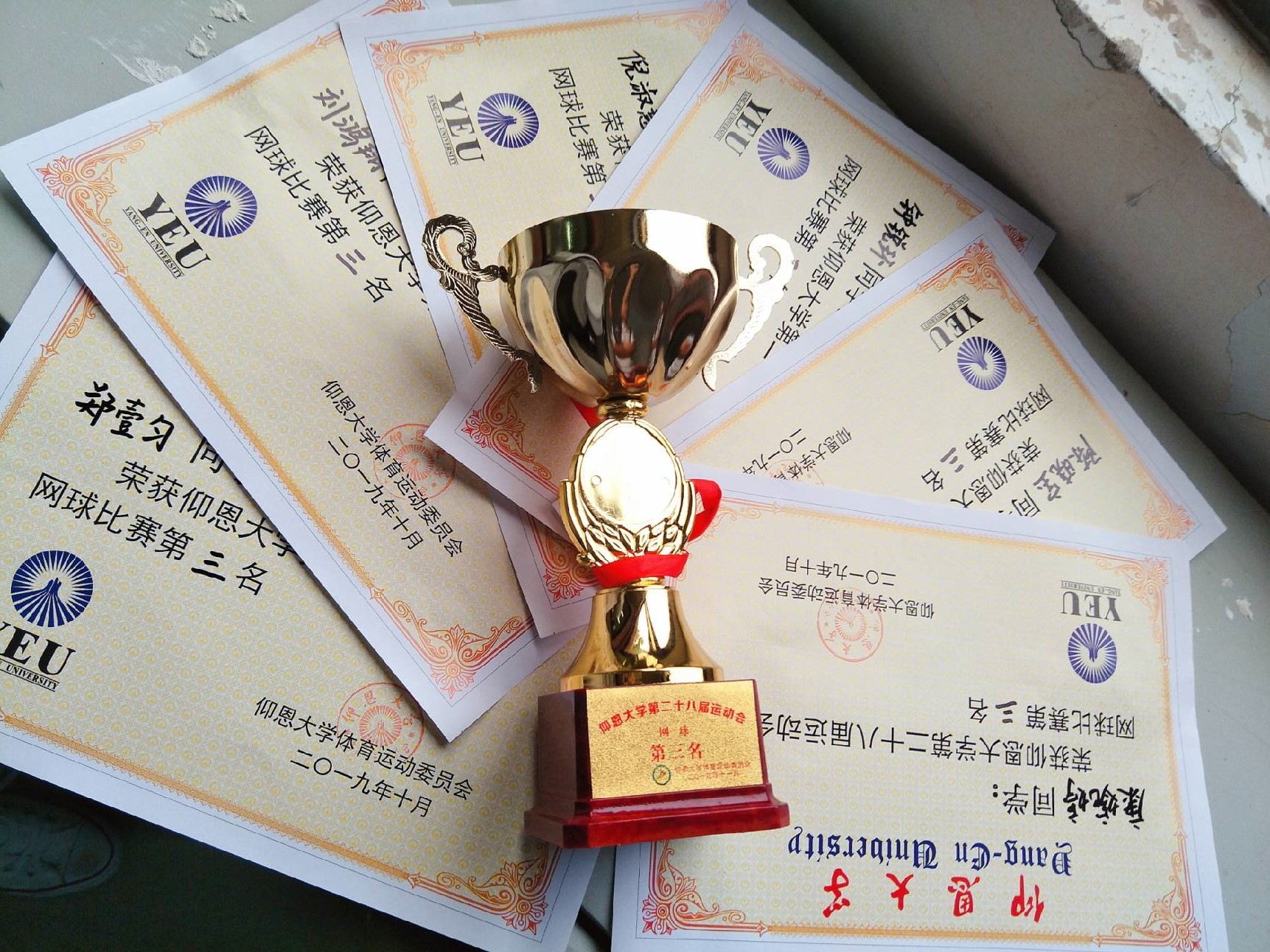 为激发同学们的运动热情,活跃学校体育运动氛围,提高大学生的体质健康水平,10月30日下午,永利集团3044第二十八届运动会网球比赛颁奖仪式在第一教学区网球场上正式举行。此次比赛,市场营销系的队伍发扬团队精神取得了季军的好成绩。