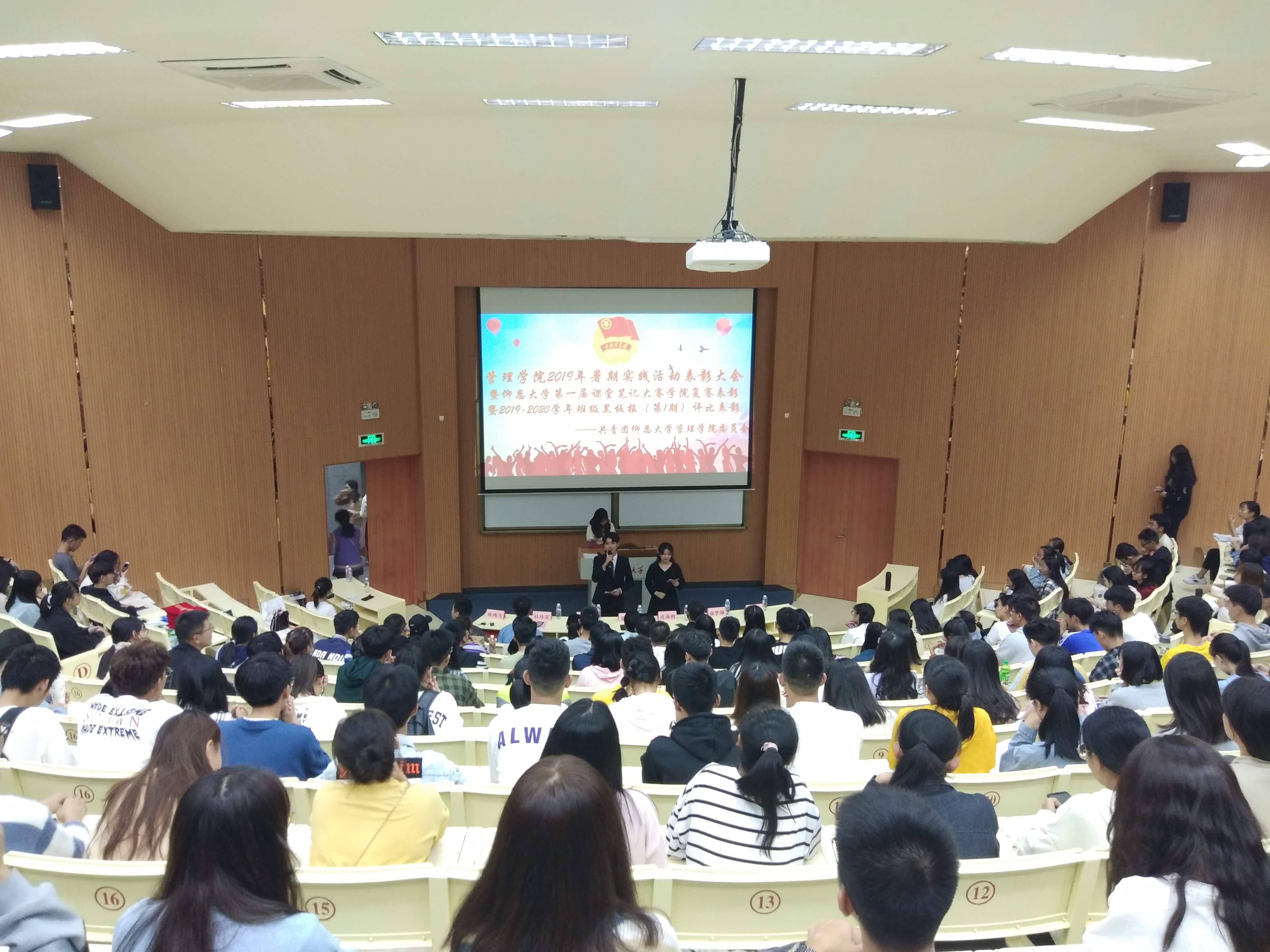 10月31日晚,我院2019年暑期实践活动表彰大会(暨永利集团3044第一届课堂笔记大赛学院复赛表彰大会和2019-2020学年第一期班级黑板报——庆祝新中国成立70周年专题评比表彰大会)在第一教学区和昌教学楼致知讲堂举行。3044永利集团院长翁景德、副院长庄海刚、3044永利集团党总支副书记蔡惠丽、院团委书记杜结实、各系团总支书记出席表彰大会,各实践队指导老师、获奖学生代表以及2019级全体大一新生参加表彰大会。