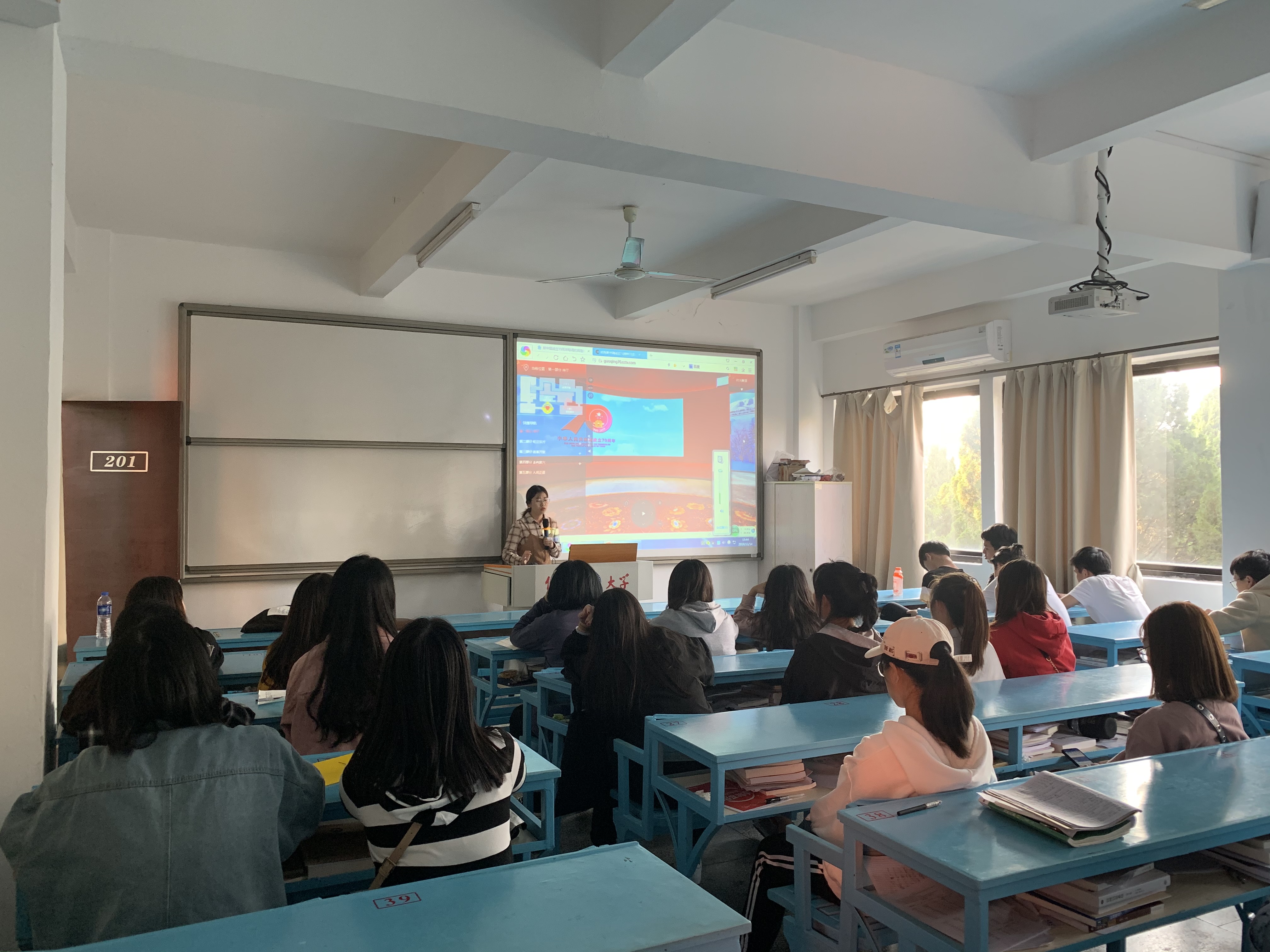 11月14日下午,公共管理系学生党支部组织支部全体成员于吉龙楼201开展“伟大历程  辉煌成就——庆祝中华人民共和国成立70周年大型成就展”网上展馆参观学习。