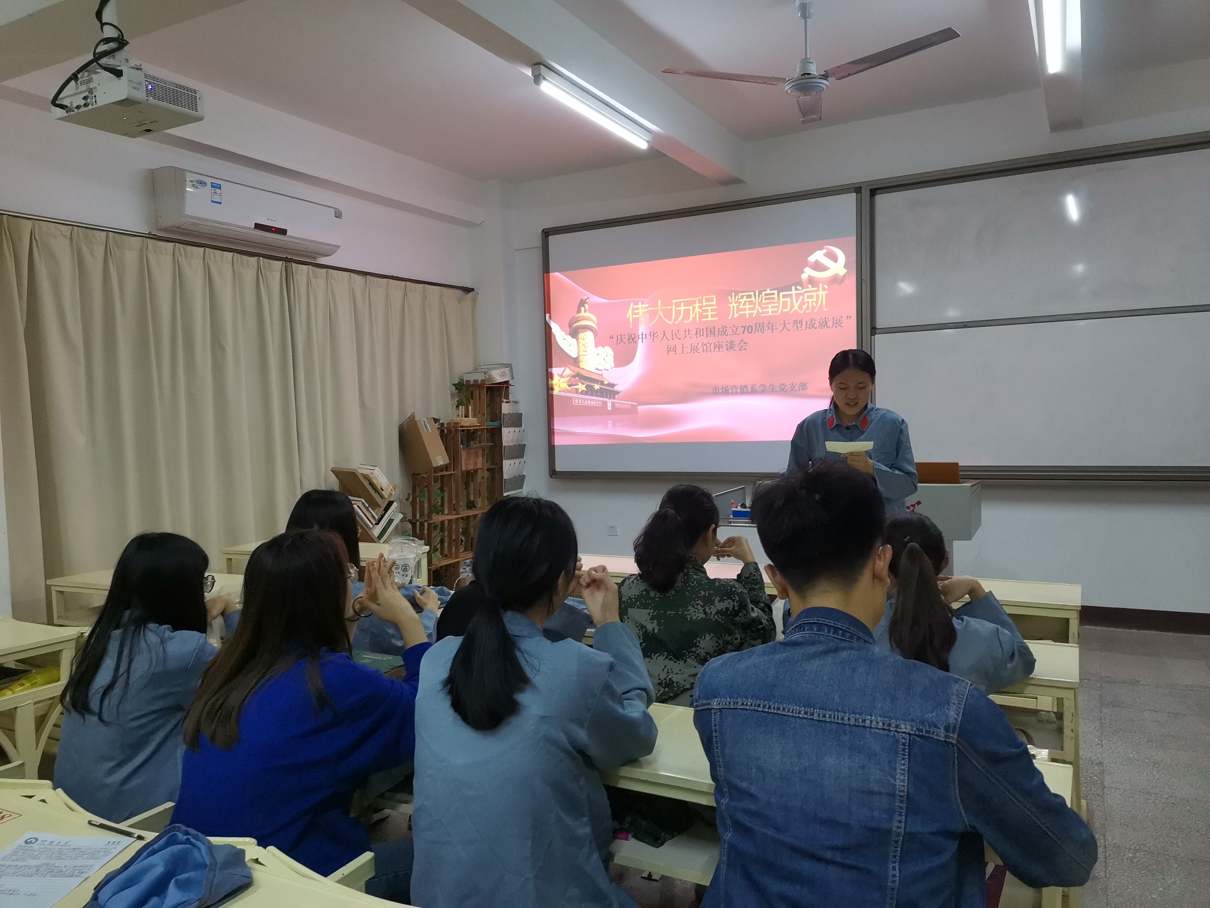 市场营销系学生党支部开展“庆祝中华人民共和国成立70周年大型成就展”网上展馆座谈会
