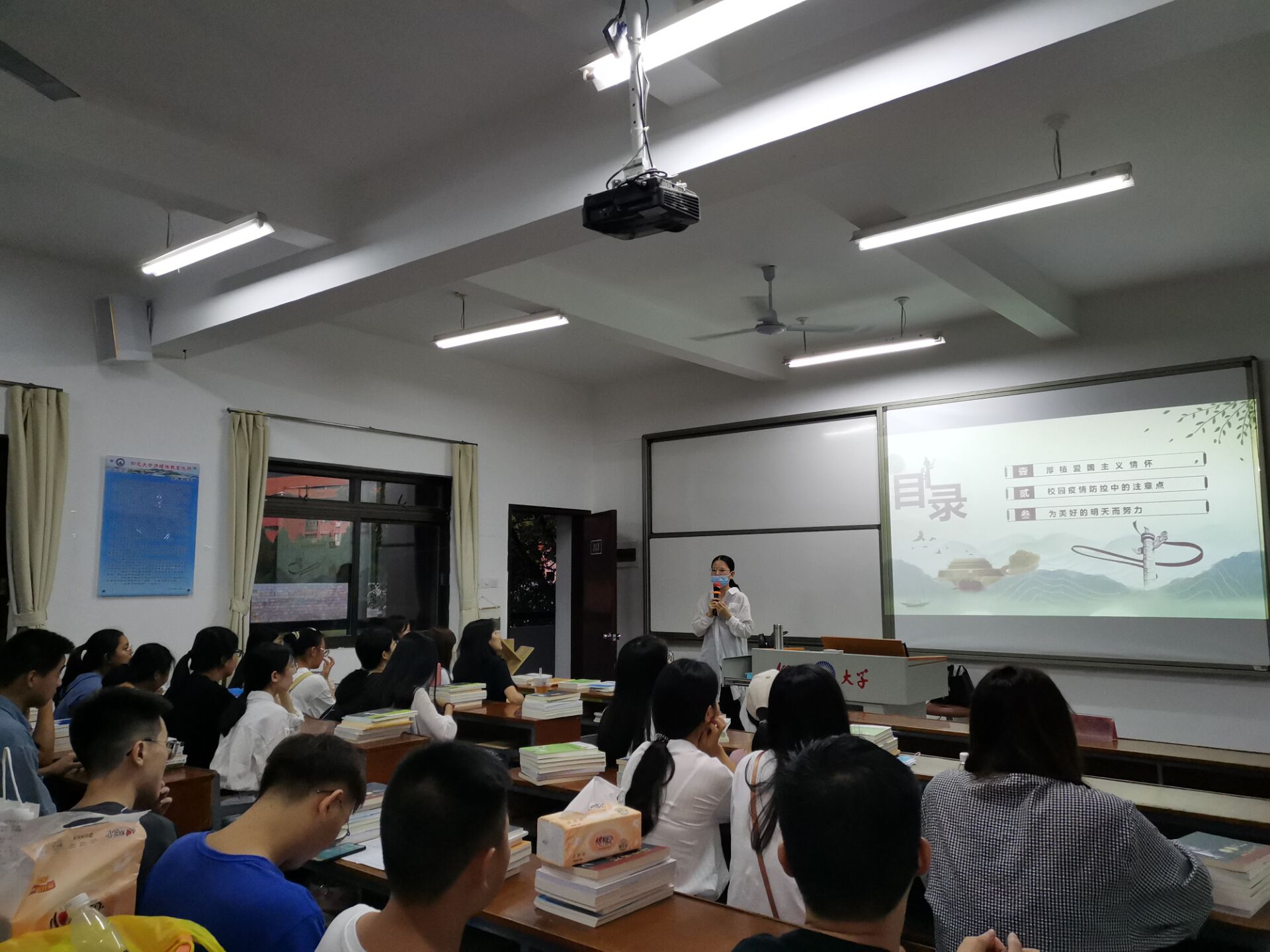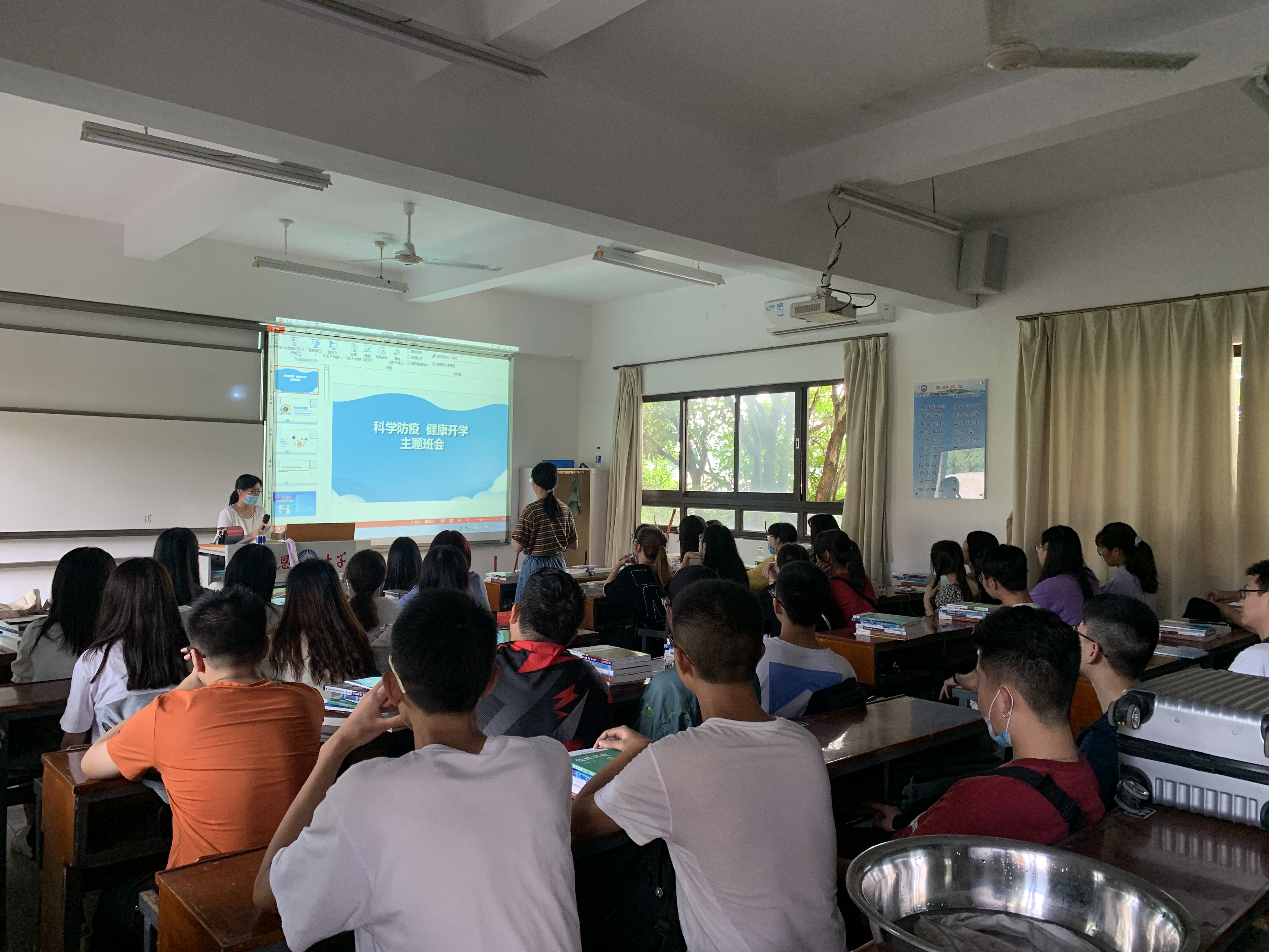 为进一步加强疫情防控宣传教育,引导学生科学防疫,提高学生防疫意识,8月30日晚,我院组织2017-2019级学生于各班班级固定教室开展2020年秋季“开学第一课”主题班会,活动由各班班主任主持。本次活动旨在引导学生正确认识疫情,强化疫情防控下的思政教育和爱国主义教育。