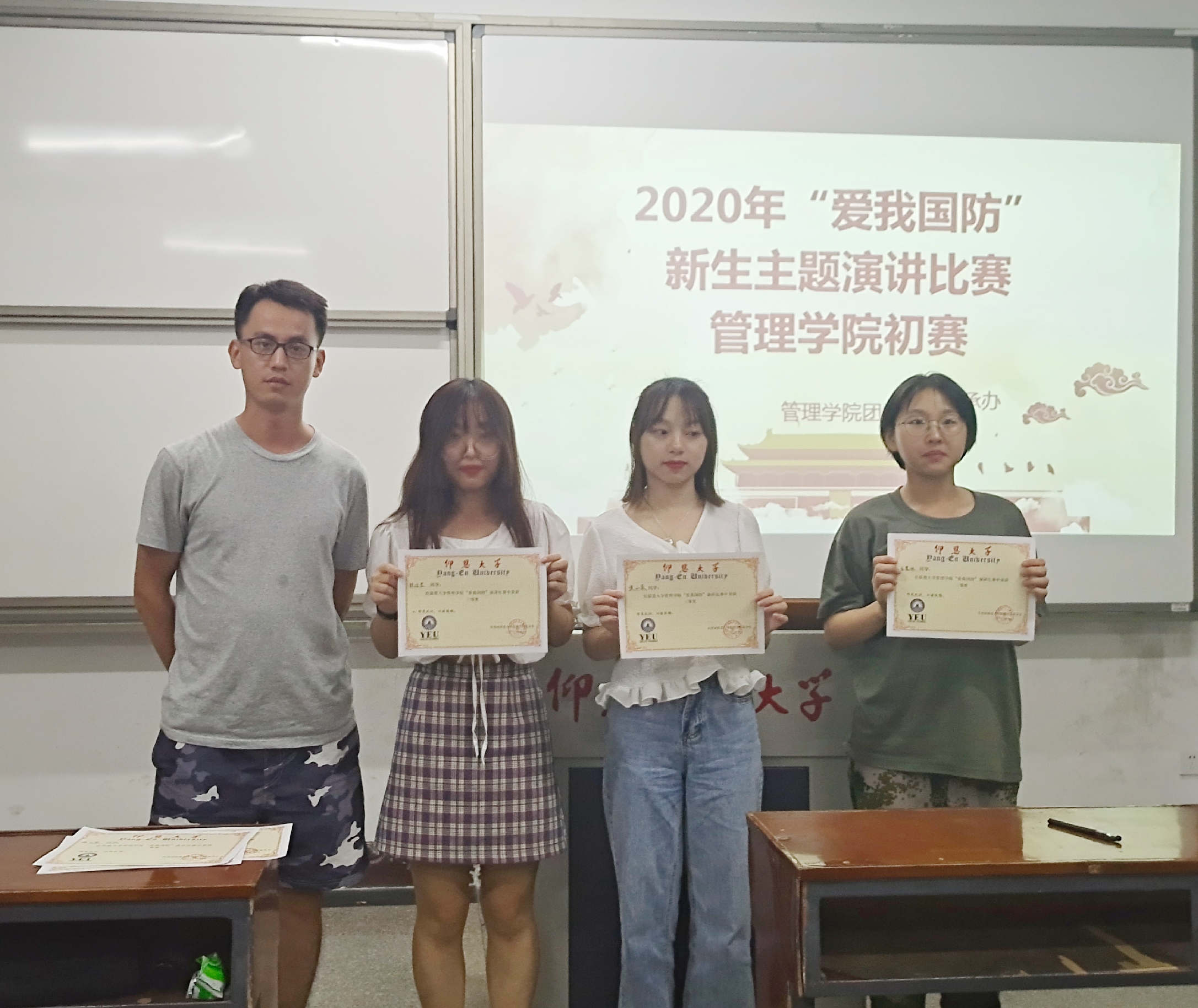颁奖环节 经过激烈角逐,获奖名单如下:一等奖:王莹莉;二等奖:温玉萍、陈鸿;三等奖:徐洁莹、马慧林、黄小荣;优秀奖:李嘉、林资、游林耿、余凤凡。在此预祝参加校赛的新生们取得佳绩!(雷清清、张绣婷/文 吴烨琳/图 审核:杜心田)