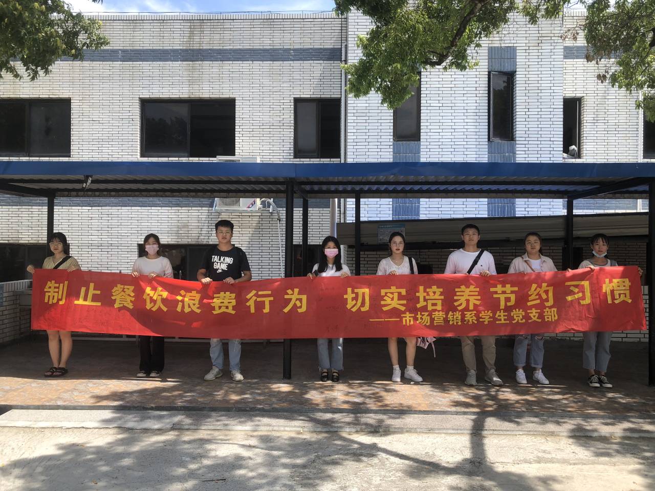 签名 活动开始,同志们向往来食堂吃饭的行人介绍习近平总书记关于制止餐饮浪费行为、切实培养节约习惯的倡导,带动他们参与其中,并签字以示大学生践行勤俭节约、光盘行动的决心,同学们纷纷表示杜绝节约不能只是说说而已。同时,党支部的同志们更以身作则将光盘行动落到实处。