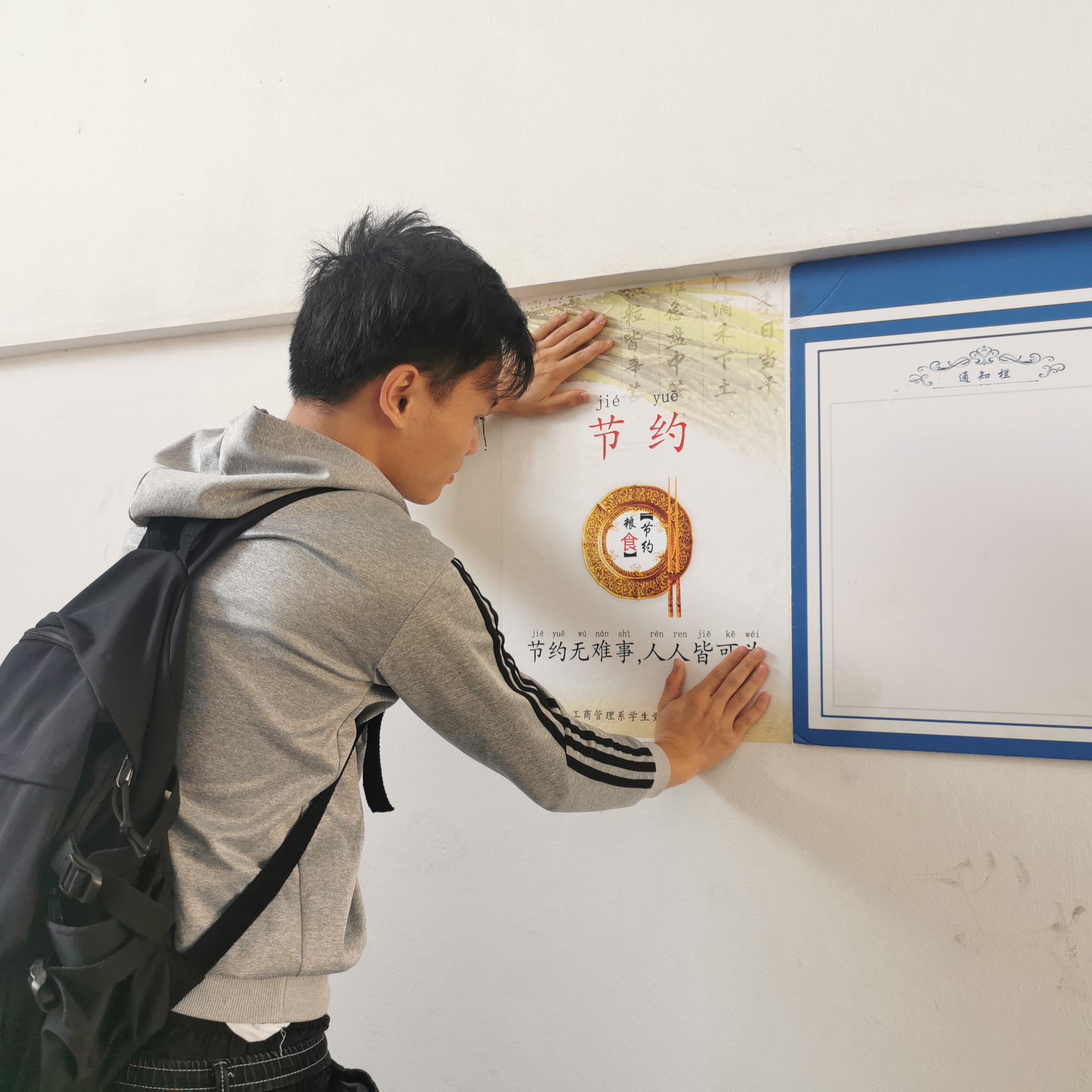 粘贴海报 大会伊始,支部书记蔡惠丽首先说明了会议的目的和内容,向大家介绍了会议的流程。其次,支部宣传委员伍晓容通过ppt分享“厉行节约,反对浪费”的精神和党员采取的行动举措。随后观看学习红军长征的衣食住行视频,长征多到人迹罕至的地方,艰苦的程度难以想象,风餐露宿,全体党员更加充分的了解长征的艰难困苦。然后学习习近平关于“厉行节约,反对浪费”的文件精神,最后全体党员签名倡议书并在微信上转发倡议书,表示贯彻习近平“厉行节约,反对浪费”文件精神。最后利用剩余时间,在共和楼工商管理系宣传栏粘贴宣传海报,积极引导同学们厉行节约、反对浪费的新风尚。