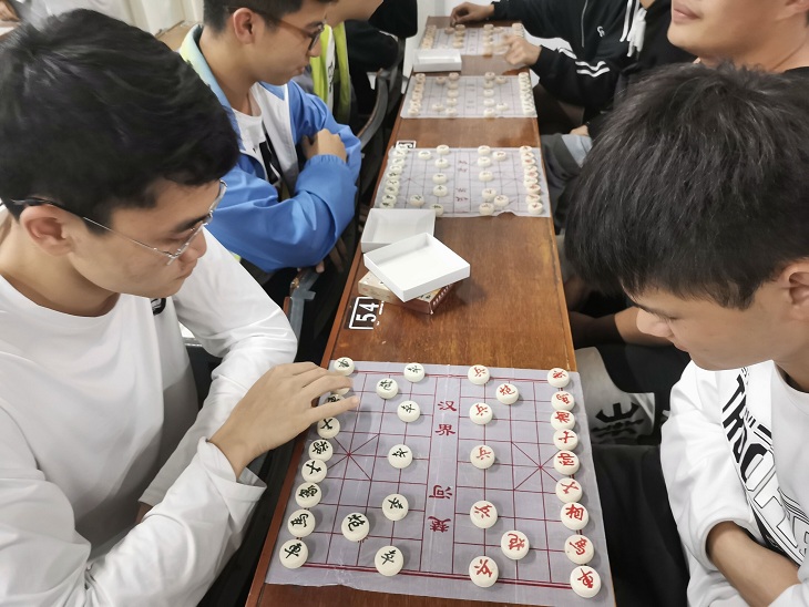 本次比赛分象棋、围棋、军棋、五子棋、跳棋、飞行棋六个项目,比赛采用随机抽签的方式决定对手与下棋过程中的先后手,本着公平公正的原则有条不紊地进行,同学们发挥才能,斗志斗勇,有的凝神思考,有的微笑执子,有的欲执又罢。有的镇定自若稳操胜券,有的左顾右盼举棋不定。有的双方势均力敌,棋走的越来越险,观棋者的心也是提到了嗓子眼儿。各路棋手各展所长,奋勇争先,进行着紧张而激烈的比赛,各式各样的棋风和精彩的棋局局势无不让人感到热血澎湃。