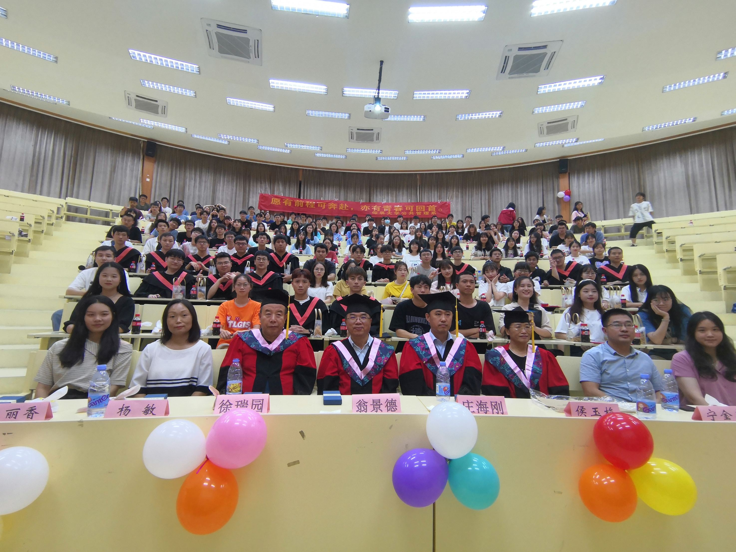 大合照 晚会伊始,在主持人声情并茂的对话中,本次晚会拉开了帷幕。杨敏主任首先进行致辞,讲述了从设立本专业的初衷,到一步步将其建设完善这期间的心路历程,对于本专业毕业生百分百的就业率,翁景德院长感到了骄傲和自豪。随后各位毕业生轮流上台进行了“拨穗仪式”,在几位院长及教授的“拨穗”下,拨穗正冠、整装待发。接下来几位毕业生代表的发言更是让人感到受益匪浅,几位毕业生将自己的亲身经历和实践经验悉数传授给台下的学弟学妹,激励大家在未来的人生道路中永远保持一个健康的体魄和良好的心态,勇于拼搏、不畏失败,努力实现人生梦想。最后,在大合唱和翁景德院长语重心长的讲话中,本次晚会圆满落幕。