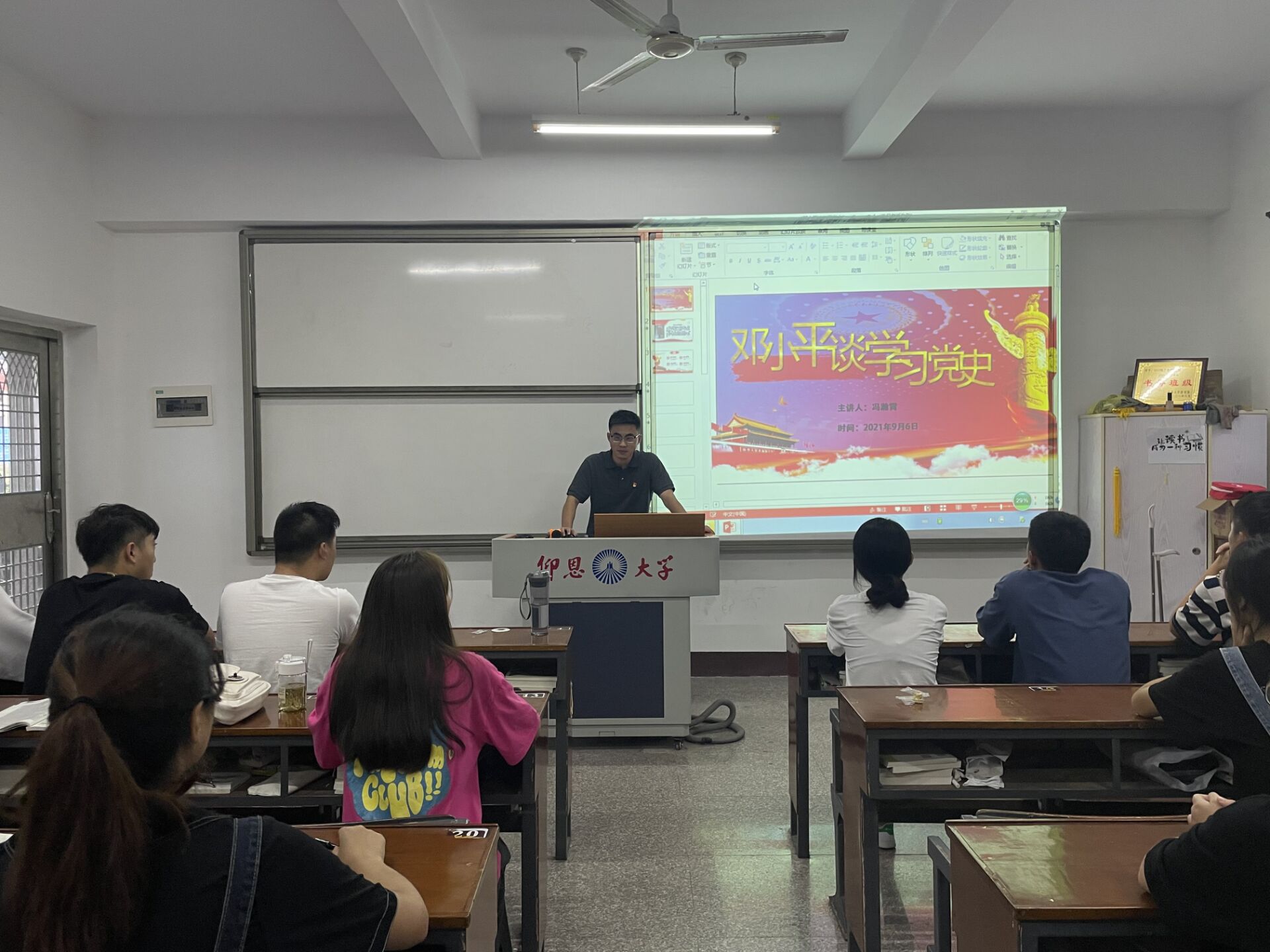 为深入学习宣传贯彻习近平总书记“七一”重要讲话精神,工商管理系学生党支部于09月06日下午在永利集团3044第一教学区共和楼213,支部书记冯瀚霄以“邓小平谈学习党史”为主题,讲授了一堂主题鲜明、深刻生动的党史学习教育专题党课。