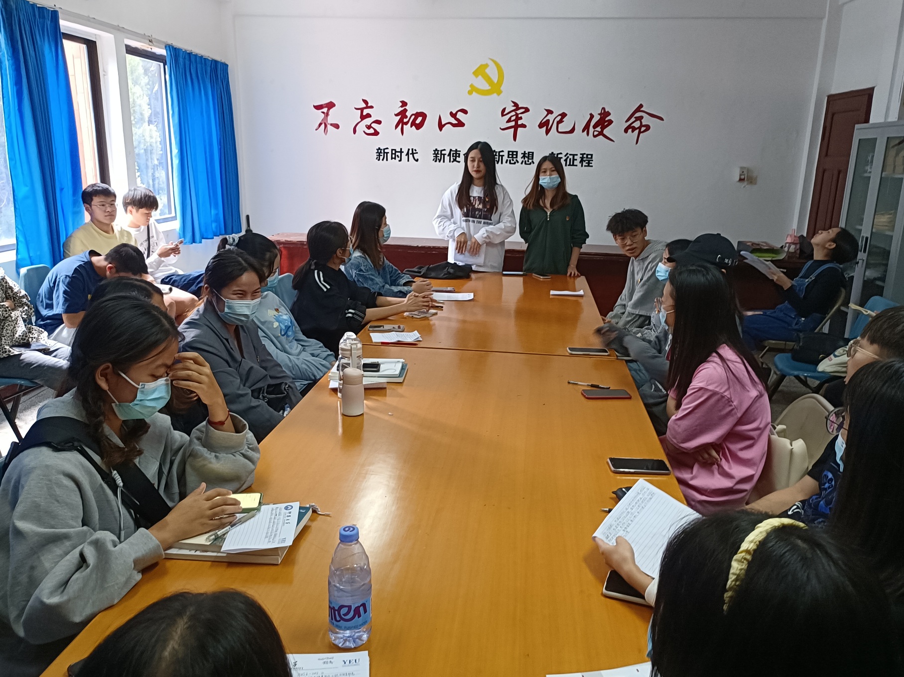 10月18日中午,市场营销系学生党支部于曼谷楼202开展“精神永放光芒,初心照耀八闽”主题宣传党日活动,此次由张馨月同志主持,党支部全体成员参加。