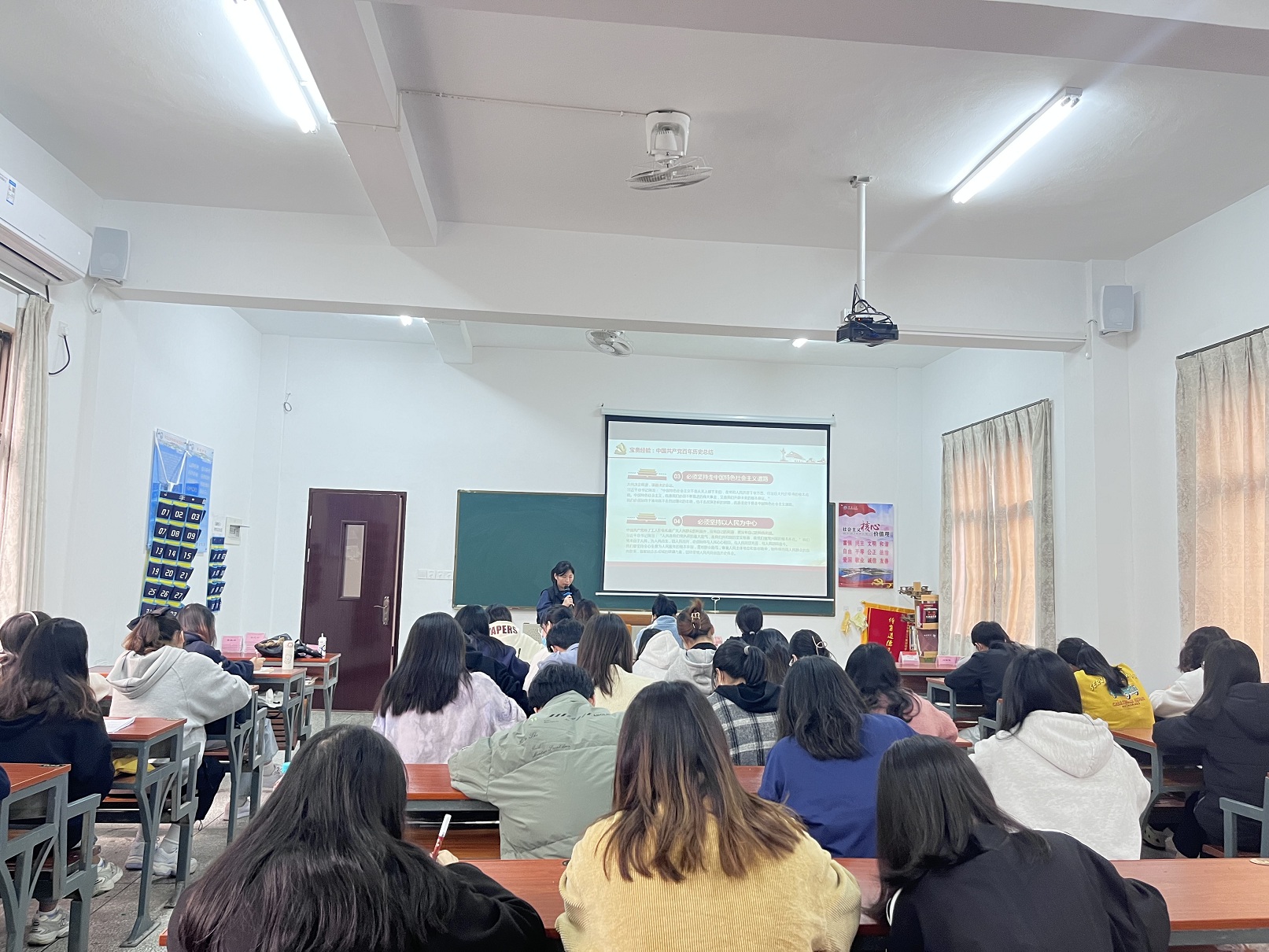11月23日中午,市场营销系学生党支部在祥贤楼209开展“筚路蓝缕百年路,高歌奋进新征程”主题的党课活动,市场营销系学生党支部全体党员出席本次会议,由余凤凡主讲。