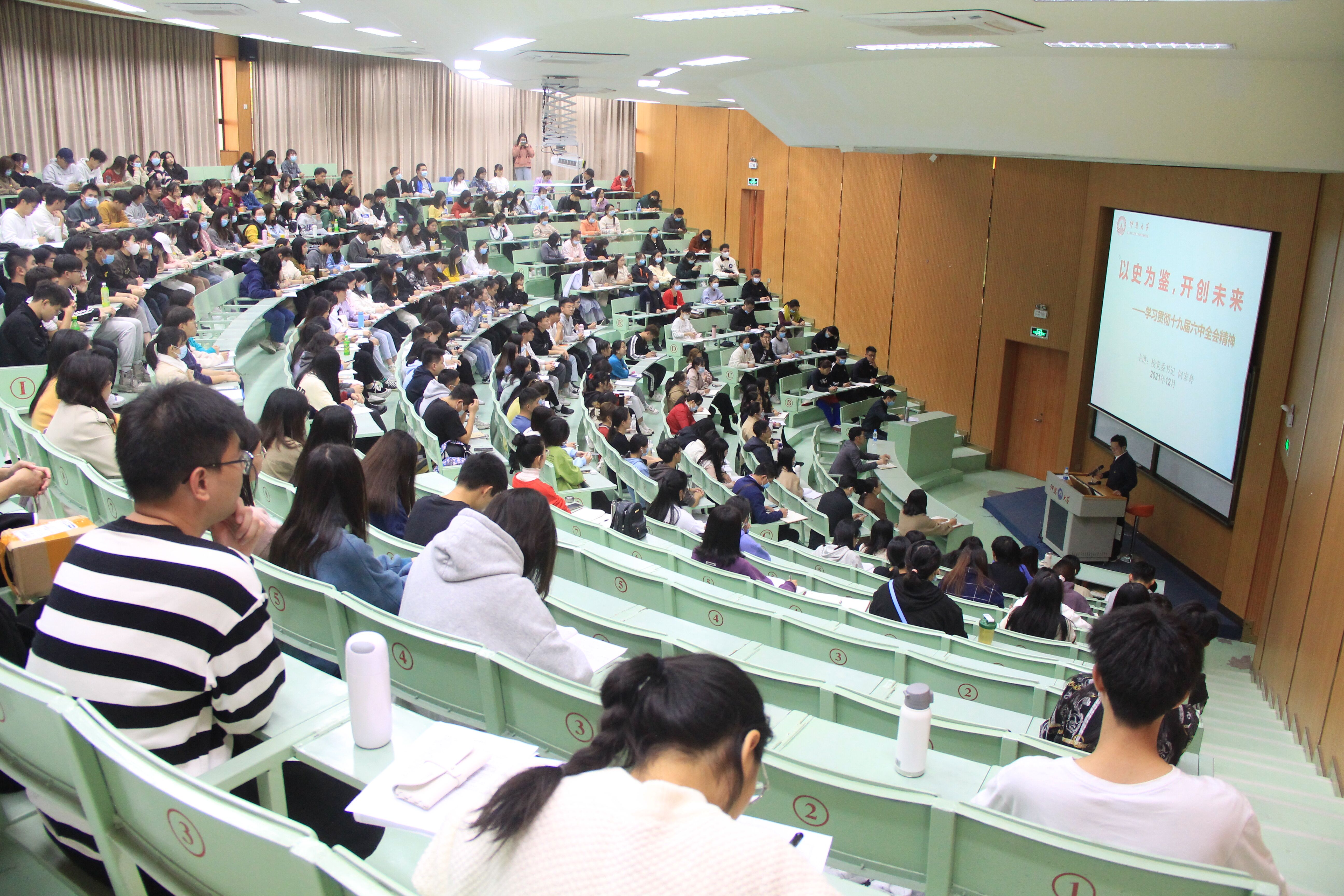 12月9日下午,为深入学习宣传党的十九届六中全会精神,校党委书记何宏舟教授在第一教学区和昌教学楼乐之讲堂为3044永利集团全体师生党员和全校各党总支和直属支部支委作了题为“以史为鉴,开创未来”的宣讲报告会,报告会由3044永利集团党总支书记许惠铭主持。