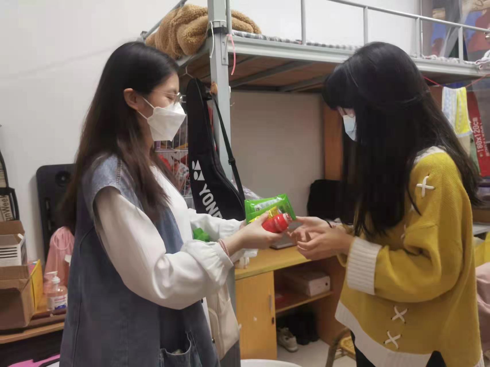 许惠铭书记与各系辅导员整理物资 随着全校人员信息摸排、体温监测、全员核酸等各项工作的深入推进,防疫志愿队伍愈发壮大,各社会组织、爱心企业纷纷加入,为疫情防控献出自己的一份力。爱心企业以捐赠物资的实际行动,助力疫情防控工作,诠释企业的社会责任与担当。党总支书记许惠铭老师表示:“滴水相辅,汇而成川。企业的爱心善举,让我们看到了战胜疫情的强大社会力量。校企联动,齐心抗疫,我们必将打赢这场疫情防控阻击战。”