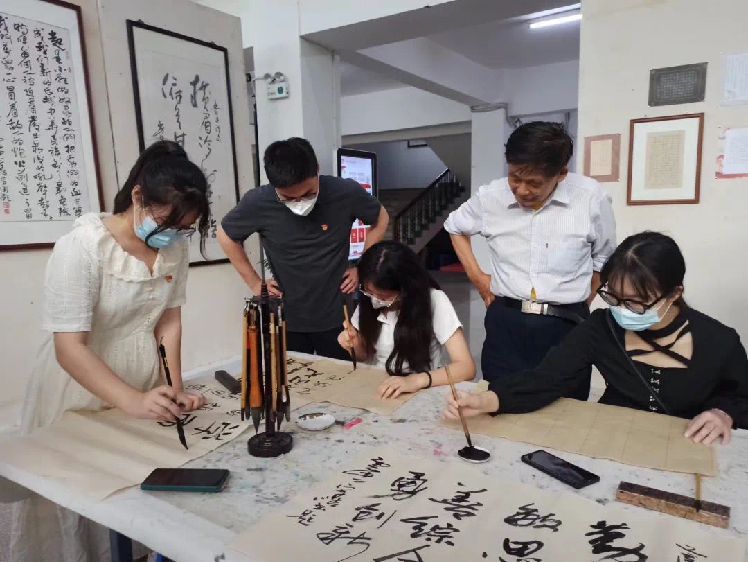 老师与党员同志们合影留念 “雄文经典九州传,第二百年扬远鞭。踏上新程迎赶考,成功密码继红船。”通过本次党日活动,支部党员们不仅感受到“书法”这种传统文化的魅力,并通过传统文化教育引导各支部成员,厚植爱国,爱社会主义的情感,树立远大理想,增强奋斗精神,争当中华民族伟大复兴的主力军。