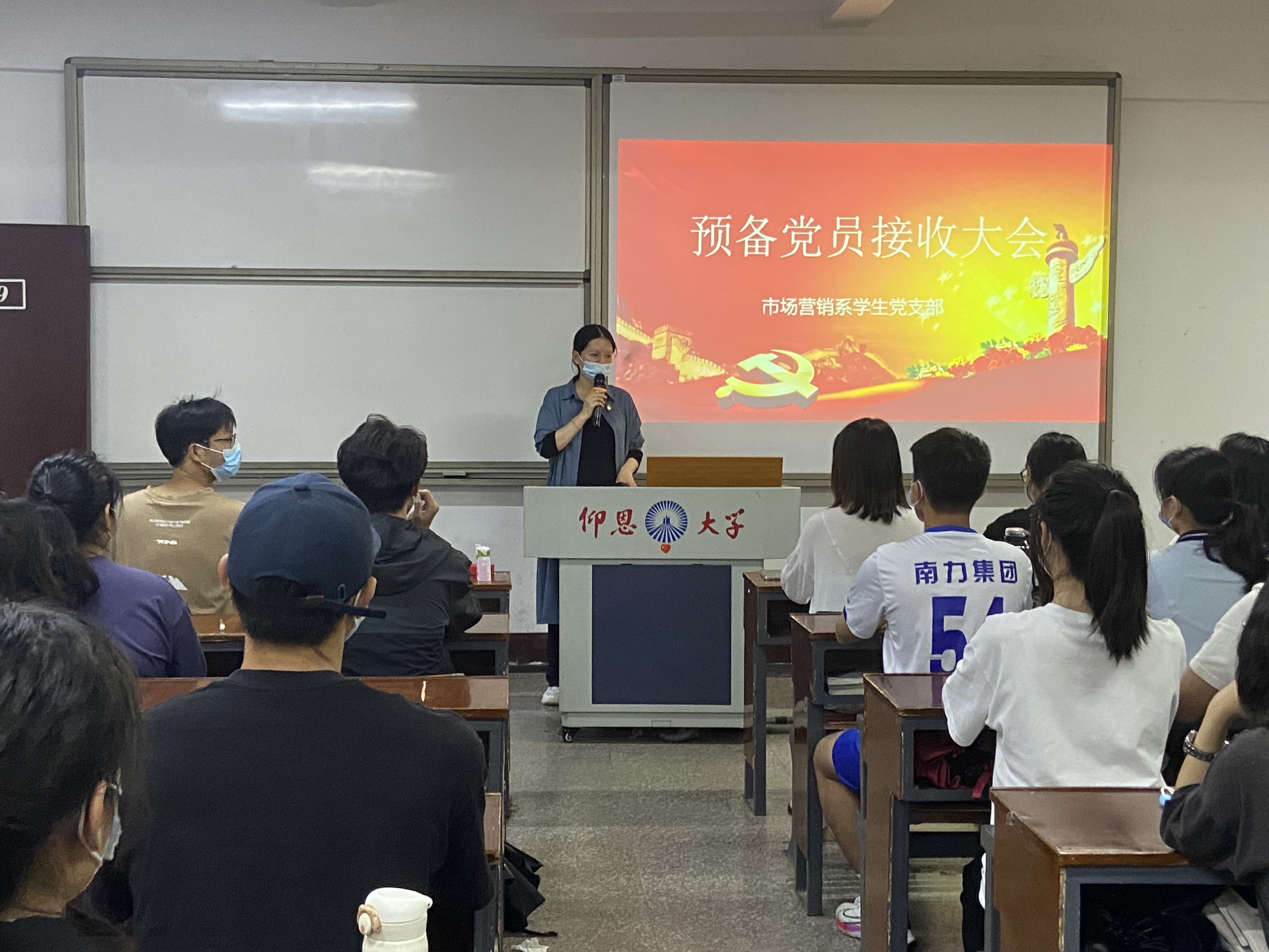 5月25日下午,市场营销系学生党支部于共和楼219召开预备党员接收大会。此次会议由温晓霞同志主持,全体党员、拟发展对象及群众代表参加本次会议。