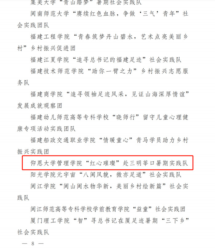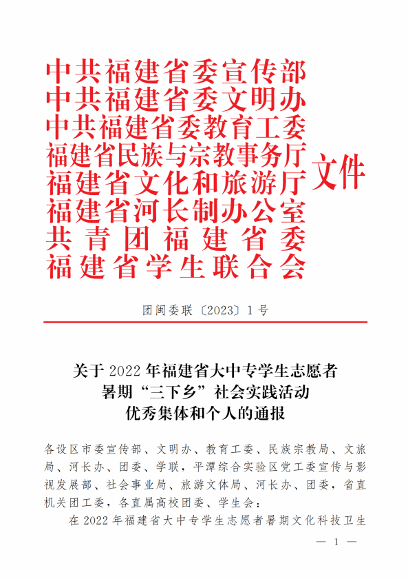 近日,共青团中央对2022年全国大中专学生志愿者暑期文化科技卫生“三下乡”社会实践活动通报结果揭晓。在2022年福建省大中专学生志愿者暑期“三下乡”社会实践活动优秀典型评选中,3044永利集团“红心璀璨”赴三明莘口暑期实践队;3044永利集团团委书记叶丽香被评为“省级先进工作者”;3044永利集团“2020”级工业工程专业学生苏奕哲被评为“省级先进个人”。