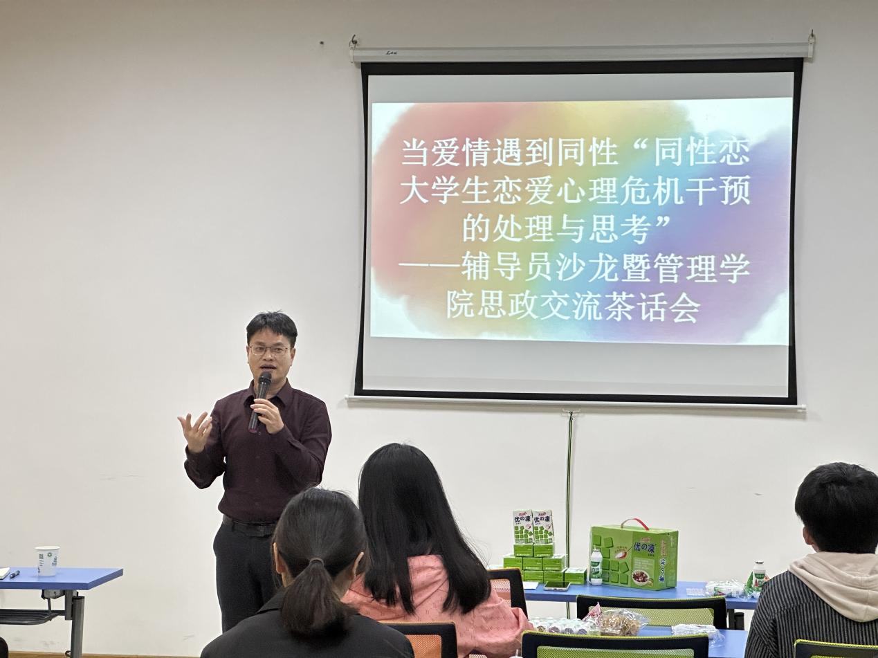 最后,学事部主任吴胜潮老师进行了总结,他指出同性恋大学生正在成为一个隐秘存在却越来越不容忽视的校园群体。辅导员应通过日常观察、心理普查、聊天访谈等方式尽可能了解学生中同性恋者的情况,有针对性地实施心理辅导,不断提高思想认识,严格落实主体责任,发挥全员育人的工作实效。