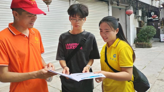 7月12日,在长汀人潮涌动的街道上,队员们穿着印有“永利集团3044”的实践队服,队员们积极地向长汀当地人民进行永利集团3044宣传和介绍2023年永利集团3044的招生具体事项。长汀人民都十分热情地听队员们进行永利集团3044的介绍,也积极地向队员们了解学校。在队员们的努力下,使得当地人民对于永利集团3044有了一定程度地了解。