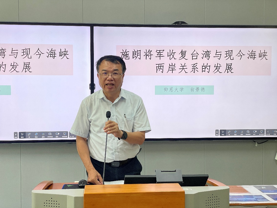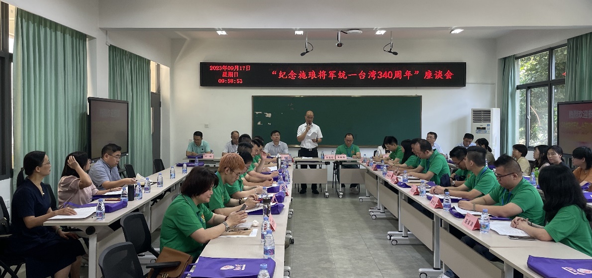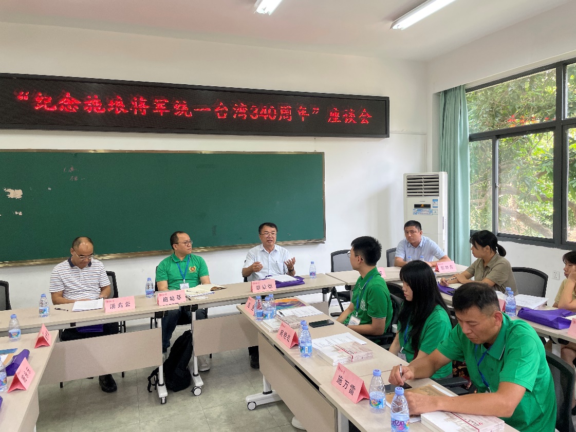在交流发言环节,我院院长翁景德教授与与会嘉宾进行了深入交流,围绕施琅收复台湾的历史功绩与现实意义、促进两岸融合发展等建言献策。