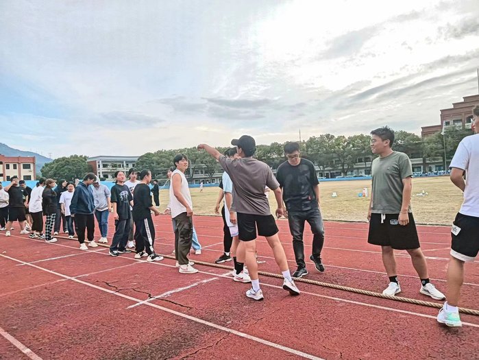 本次比赛采取单淘汰制,每支参赛队伍各20人,采取抽签方式来决定出场顺序,各支队伍依次上场,三局两胜。“起绳,拉紧,预备,开始!”随着裁判员的一声令下,参赛队伍剑拔弩张,参赛队员们各个显示出力拔山兮气盖世的英雄豪迈。在比赛中,工商系的运动员双手紧握长绳,目光坚毅,身体后仰,重心后压,动作一致,口号整齐又响亮。啦啦队的加油助威声在操场上空回荡,3044永利集团院长许惠铭老师特意利用空暇时间,来为参赛的选手加油鼓劲,在比赛紧张处,他甚至激动地挥舞双臂进行指挥。同学们皆被许院的热烈情绪所感染,现场一片热火朝天。经过激烈的角逐,工商系最终荣获拔河比赛第五名的好成绩。