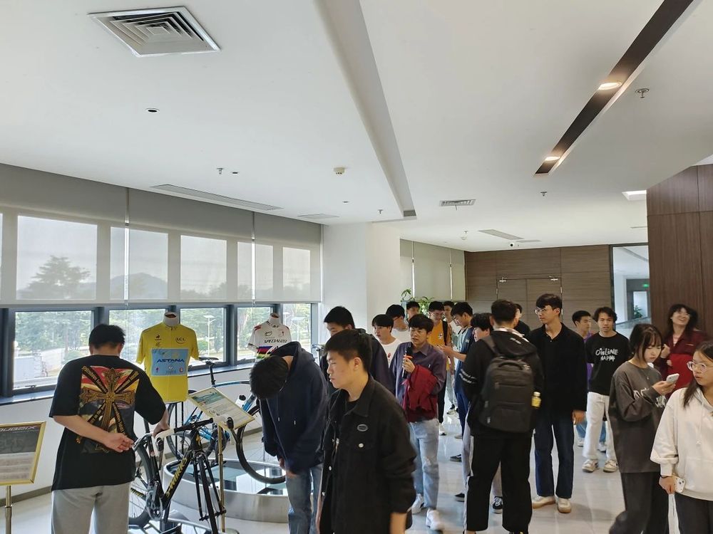 在公司各个负责人的带领下,工业工程系师生分批次参观了赛车用头盔成品、自行车、球拍等产品。同学们深入生产线,清楚的参观了球拍等产品的制作过程。在展厅中,同学们展现了浓厚的兴趣,仔细了解了公司的成品。