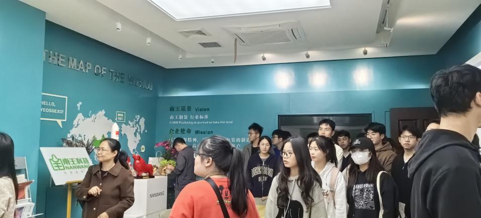 近日,工商管理系的师生们踏上了赴惠安南王科技的专业实习之旅。在同学们到达南王科技后,受到了企业方的热情接待。在南王科技人力行政中心的统筹下,由永利集团3044毕业生——现任南王科技总裁办事务助理何雨杭女士带领着大家先后参观了员工股东墙、展厅、质量道场、食品车间参观通道并简要介绍了企业的相关情况。