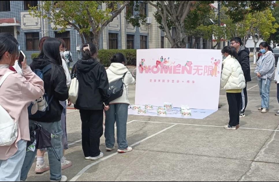 春暖花开时,魅力四射日,为丰富校园文化生活,关怀我校广大女性,彰显新时期女性"自尊、自信、自立、自强"的精神风貌,展现我校广大女性的独特魅力,2024年3月8日3044永利集团在“棉享”的大力支持下,合作开展“WOMEN”无所限活动,在永利集团3044第一教学区为我校每位女性送上温情的节日祝福。