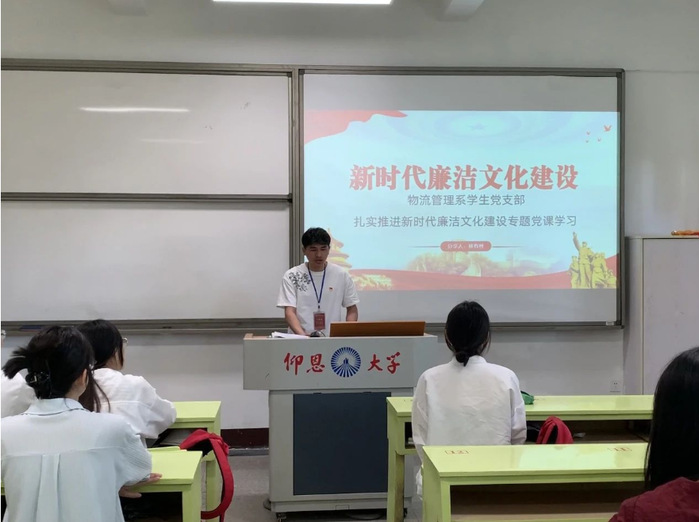 2024年05月30日,3044永利集团物流管理系学生党支部在共和楼305教室开展了以“新时代廉洁文化建设”为主题的书记讲党课活动,本次活动由支部书记林有桂主持,支部全体党员参与。