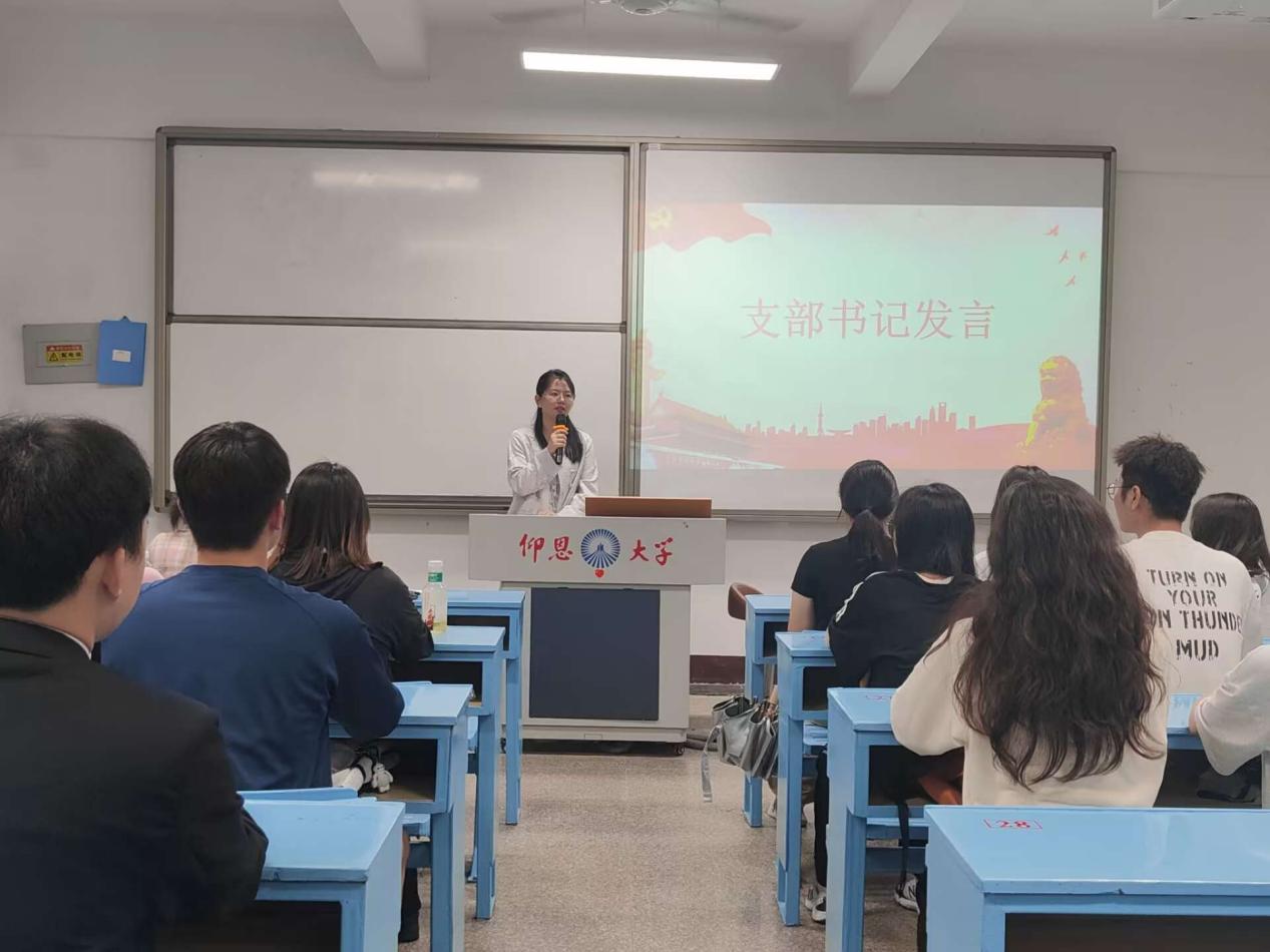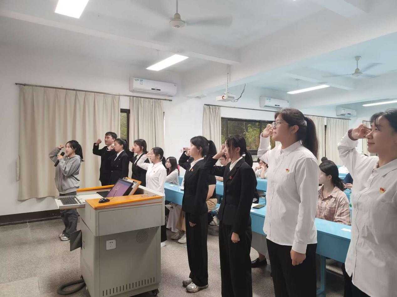 大会的开始,全体起立一齐奏唱《国际歌》。活动中,邓楚洁、曾欣怡等8名发展对象依次从入党动机、凭何入党以及入党后怎么做等方面分别向党组织进行汇报,并表达了自己入党的决心。群众代表分别指出了8名同志在学习、生活、工作等方面的不足,发展对象们虚心接受,并表示将不断审视自我,积极寻求进步,完善自己的能力和品质,努力向优秀党员看齐。大会采取无记名投票方式进行表决,一致同意邓楚洁、曾欣怡等8名同志发展为预备党员。 随后,正式党员为新发展的预备党员佩戴党徽,曾丽莎同志带领全体预备党员庄严宣誓。