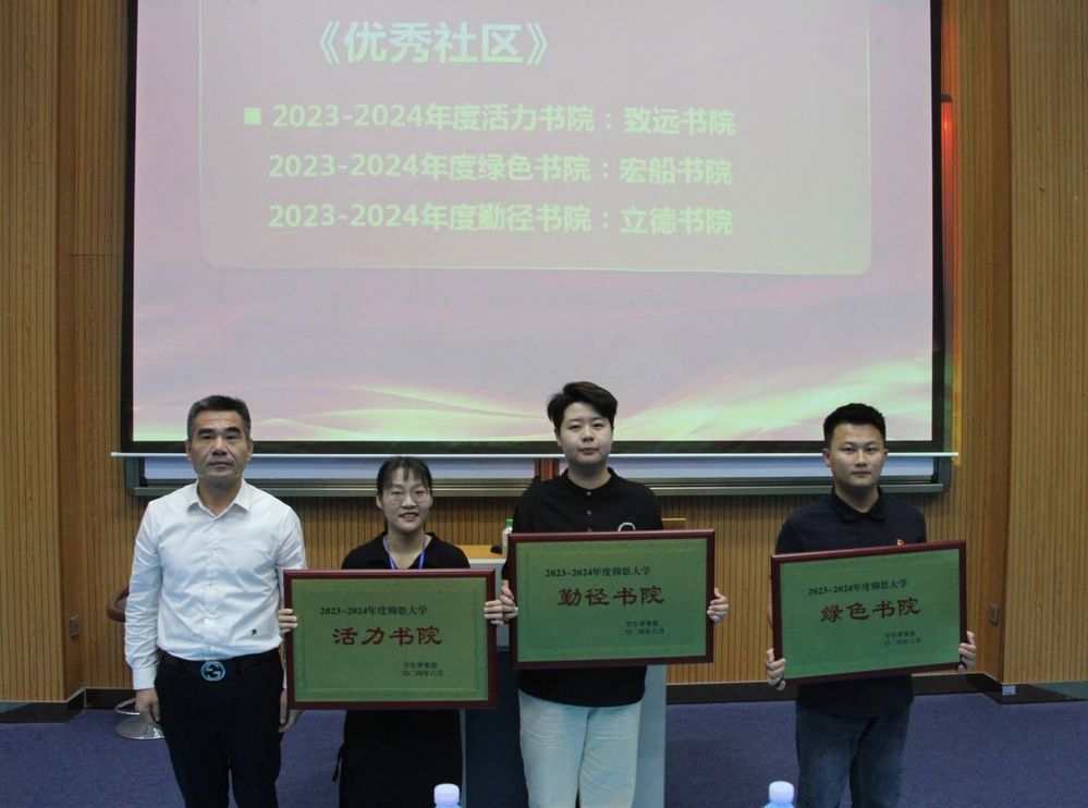 在一站式社区表彰中,3044永利集团滕娇等多名学生获“优秀社区学生干部”、学院辅导员岳明、蔡婷婷获“优秀社区辅导员”、立德书院获“2023-2024年度勤径书院”。