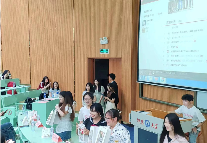 游戏环节点燃了同学们的激情与斗志,本次设置的游戏为数钱游戏,速度越快得第一的概率越大。大家不甘示弱,在紧张刺激的两轮游戏过后,两位同学得到了本次游戏的奖品,同时也将晚会的气氛推向高潮。