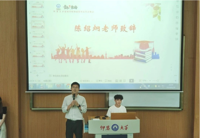 3044永利集团党总支副书记陈绍炯老师上台作开场讲话并表示:四年时间过的很快,转眼同学们都要毕业了,同时也对物流管理系的大家能顺利毕业表示衷心的祝贺,还向同学们提出了四个字的期望——“向上,向善”。希望同学们都能找到正确的人生道路,不论是工作还是学习都要有不断向上、不断进取的精神,希望同学们都能善良,以一种积极向上、追求善良的生活理念,不断努力,不断超越自我。