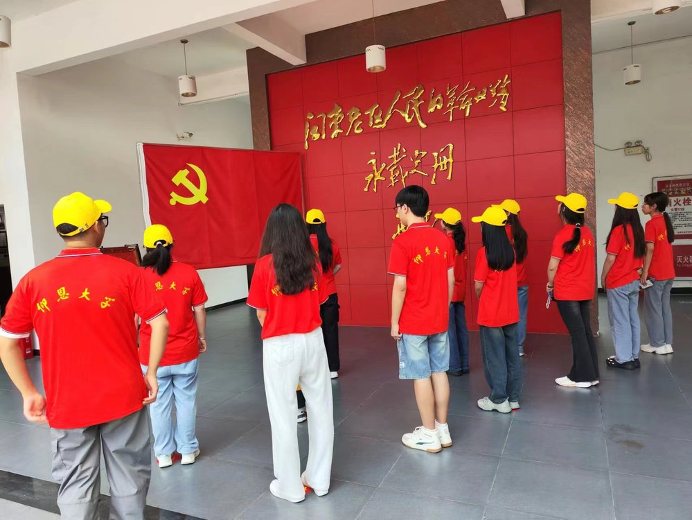 在纪念馆的大厅里,实践队员们在革命前辈叶飞同志题写的"闽东老区人民的革命业绩永载史册"的金色大字下,中国共产党党旗的面前,感悟着苏区革命的英勇、牺牲和奉献精神。之后由队长向我们讲述先烈们英勇奋斗的光辉事迹,让我们更深刻地了解了闽东苏区的革命故事。最后,实践队员们在烈士纪念碑下合影留念。