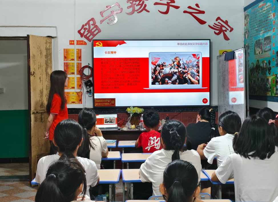 为传承和弘扬伟大长征精神,实践队队员讲述了长征的背景、路线及重大战役,如四渡赤水、飞夺泸定桥等,并重点介绍了长征精神。孩子们被长征精神深深打动,更加坚定了传承红色基因,弘扬革命精神的信念。在长征故事演绎环节,孩子们化身为红军战士,诠释了《金色的鱼钩》故事中长征时期红军战士的坚定信念和顽强斗志。通过亲身演绎,孩子们更加深刻地理解了长征精神的内涵,让在场的每一个人都受到了一次深刻的爱国主义教育。