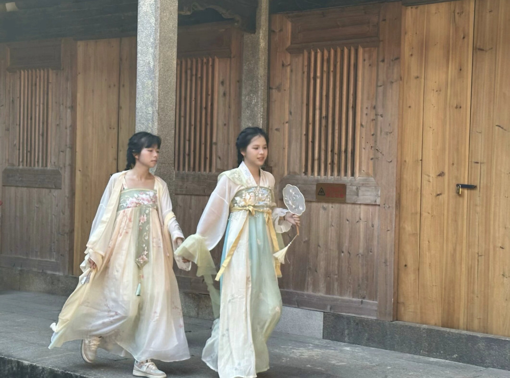 在快节奏的现代生活浪潮冲击下,诸多珍贵的传统文化传承日益式微,实践队员们前往朵桥土楼,探寻古老建筑蕴藏的瑰宝。在活动中,实践队员们穿着汉服和马面裙,她们衣袂翩翩,仿佛穿越时空而来。在朵桥土楼那厚重的历史氛围中,汉服的典雅与土楼的古朴相得益彰。他们通过镜头捕捉土楼的每一个精彩瞬间,全方位展现其独特魅力,记录下土楼的雄浑外观、精巧结构以及内部蕴含的深厚人文气息。实践队员们对朵桥土楼有了更为直观的认知,更加坚定弘扬文化的决心。