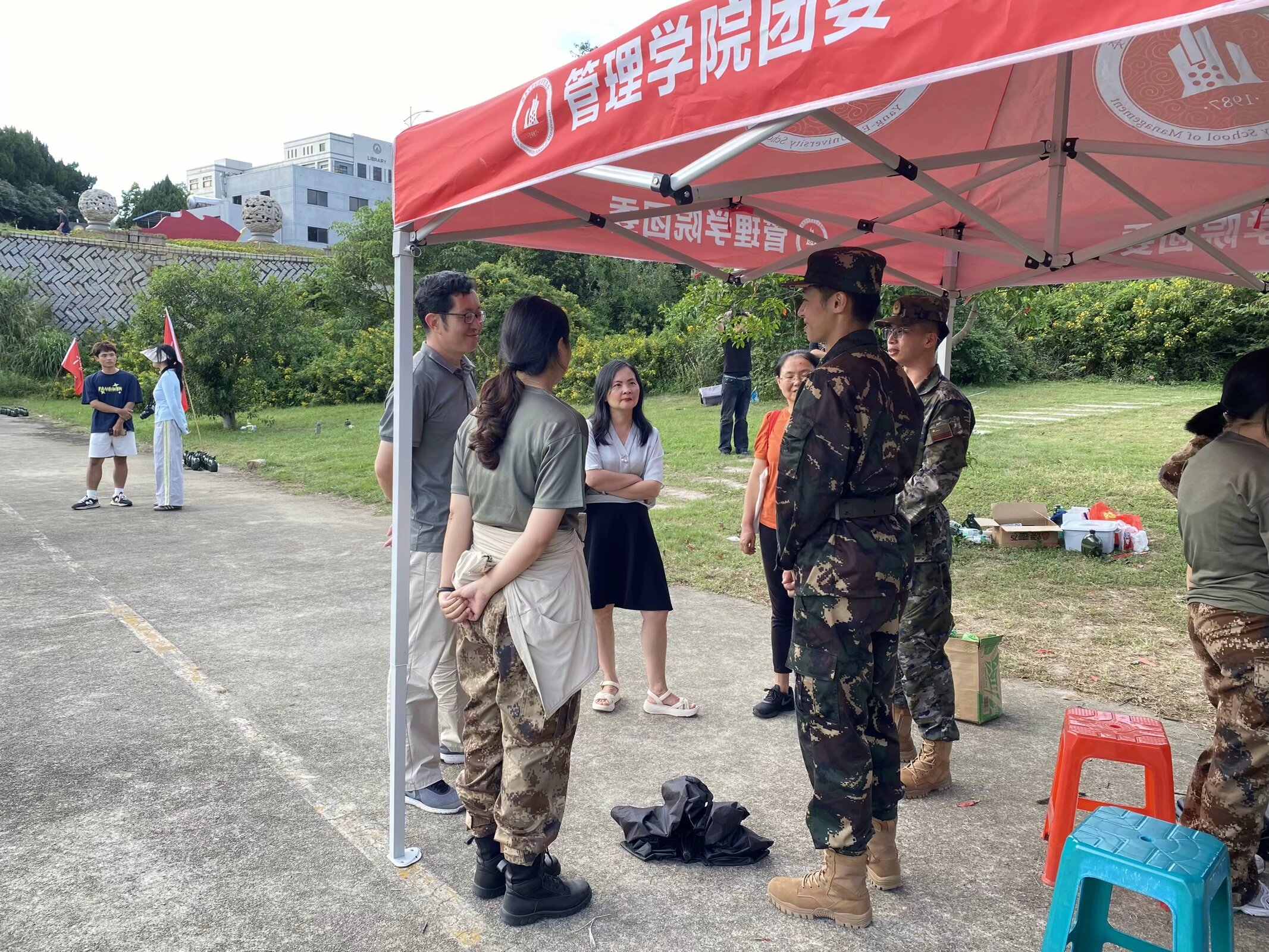 在学院党总支书记兼常务副院长许惠铭教授、副院长庄海刚副教授、副院长程春教授的带领下,一行老师踏着整齐的步伐,步入军训训练场。操场上,新生们身着迷彩服,英姿飒爽,正以饱满的热情和坚定的意志接受着汗水与毅力的考验。领导的到来,立刻吸引了全体新生的目光,现场气氛热烈。