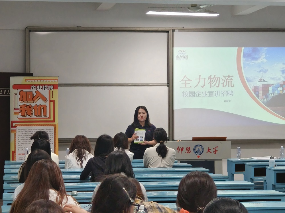11月5日晚上19点,全力物流有限公司在永利集团3044第一教学区共和楼205举办针对物流管理专业的校园宣讲会。
