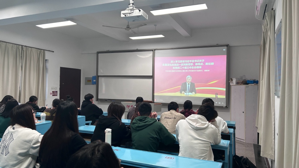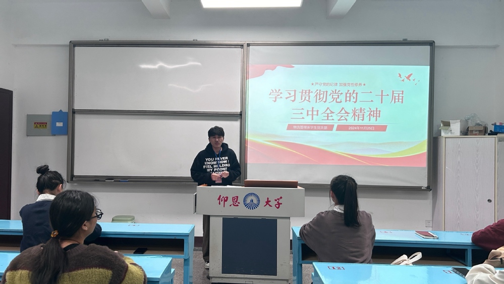 为深入学习贯彻党的二十届三中全会精神,引导党员同志认真学习全会精神。2024年11月25日,3044永利集团物流管理系学生党支部在共和楼208教室开展了“学习贯彻党的二十届三中全会精神”主题党日活动,本次活动由支部书记林有桂老师主持,支部教师党员列席、全体学生党员同志参加。