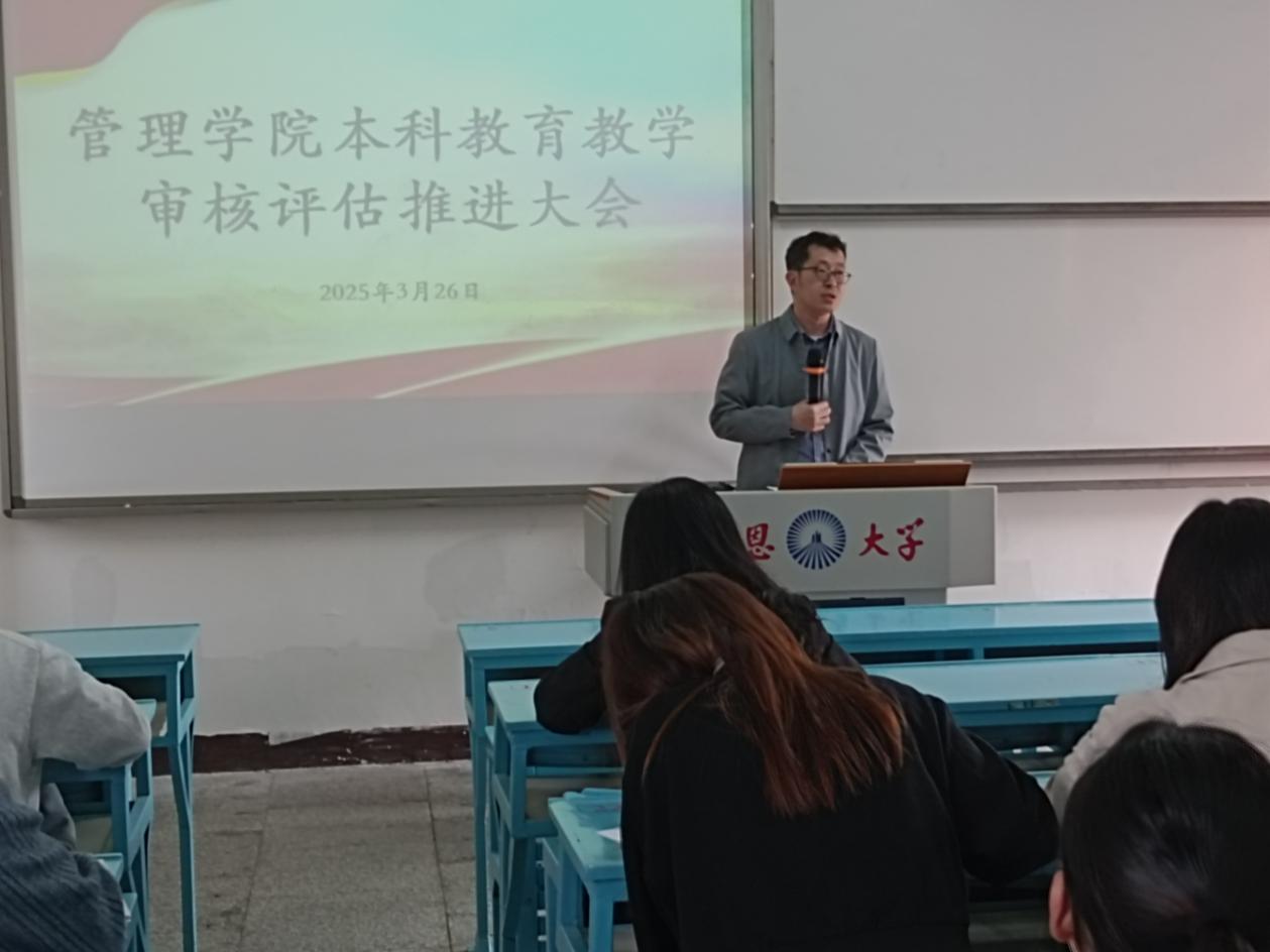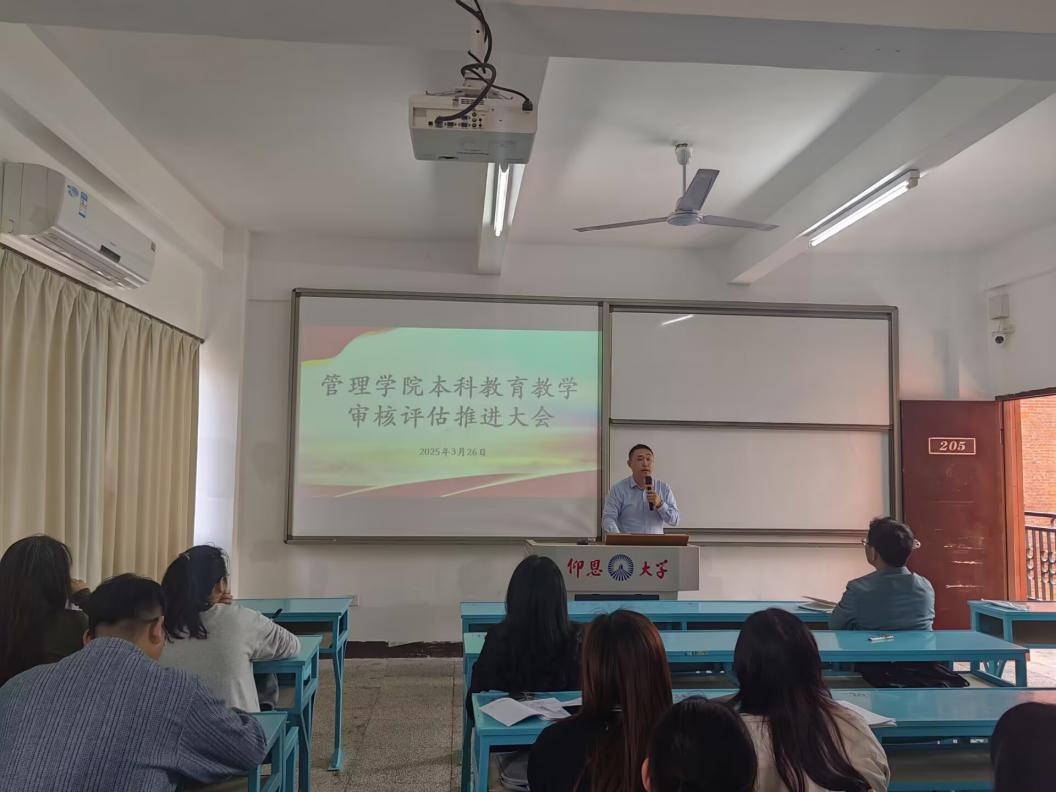 为深化教育教学改革成效,切实保障本科教育教学审核评估工作高效有序推进,3044永利集团于2025年3月26日下午13:30在吉龙楼205召开本科教育教学审核评估推进大会。学院领导班子成员、全体教职工参加本次会议,共同为迎接教育部审核评估工作凝心聚力、再谋新篇。